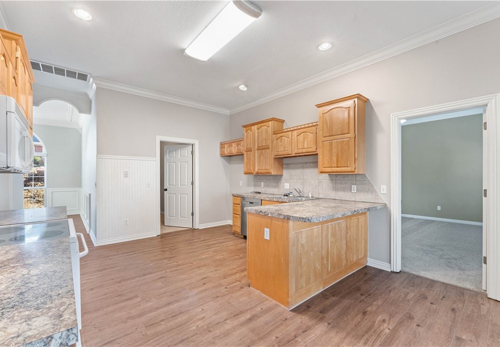 Large Family Home! Two kitchens 1 on each level. Three bedrooms on main level, one bedroom downstairs, Flex room downstairs with a closet possible office or darkroom. Formal dining room and eat in kitchen space. Eat in kitchen walks out to covered patio. Basement walks out to patio, has a massive family room space could be media, workout, game or all of the above. Workshop in the basement with its own garage door. Oversized 2 car garage. New roof October 2025, New HVAC 2025, Hot water heater 2021, New Carpet throughout the home, New LVP on main level main living space.