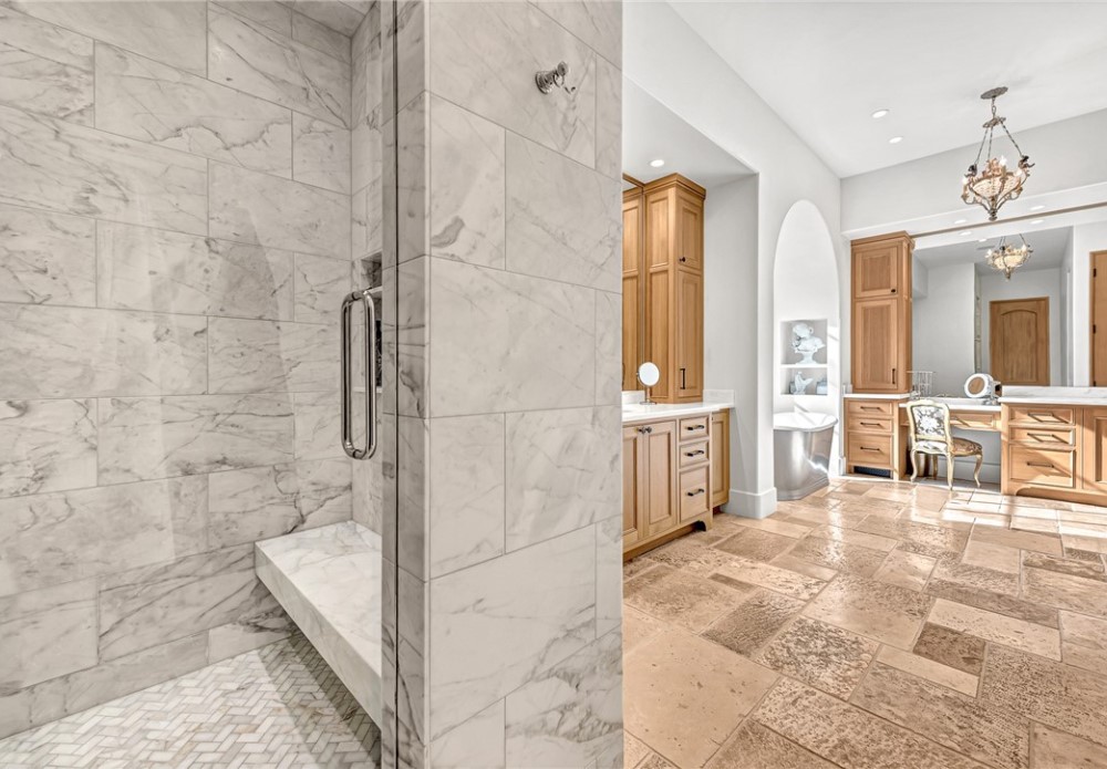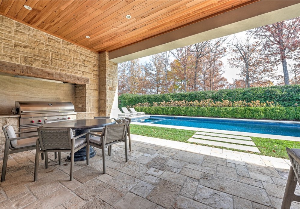 One of a kind, stunning Custom Built 6800+/- sq ft Estate Home built by Preston & Company, situated on large 0.73 acre lot in the gated Clear Creek subdivision on hole Number 9 of the Blessings Golf Course. This home has every upgrade you can imagine with curated fixtures and flooring throughout. Antique reclaimed limestone floors imported from Italy; outdoor fireplace w 16th century original antique limestone hearth and surround; interior fireplace with custom carved limestone mantle from NY; French Oak wood flooring; reclaimed terra cotta flooring from France in laundry; Kolbe windows and exterior doors; reclaimed wood beams from Colorado; custom quarter sawn French Oak cabinets and doors; antique light fixtures throughout most of the home; tiled pool and hot tub; steam shower; smart home upgrades; generator; water softener and reverse osmosis. You will not find another home with this level of fixtures and amenities. Make an appointment to see it in person to appreciate the exquis