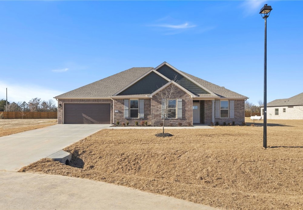 Welcome to Saddle Hill Estates, a brand new community in Rogers with hard to find, large, level lots. Experience comfort and style in the well-designed Jackson Plan, offering 4 spacious bedrooms, 2 full bathrooms, and 2,140 sqft of thoughtfully planned living space. An open-concept layout creates seamless flow between the living room, dining area, and kitchen, while tall vaulted ceilings add an airy, elegant feel to the main living space. The kitchen is a showstopper with high-end countertops, beautiful custom cabinetry, and a walk-in pantry for plenty of storage. Just off the living area, a large outdoor patio invites you to enjoy Arkansas evenings, grill out, or simply relax. Retreat to a truly exceptional primary suite featuring an oversized closet, dual vanities, a stand-up shower, and a separate whirlpool tub for a spa-like experience at home.This stunning home offers the ideal blend of space, elegance, functionality, and community living. Schedule a private tour today! *Please no