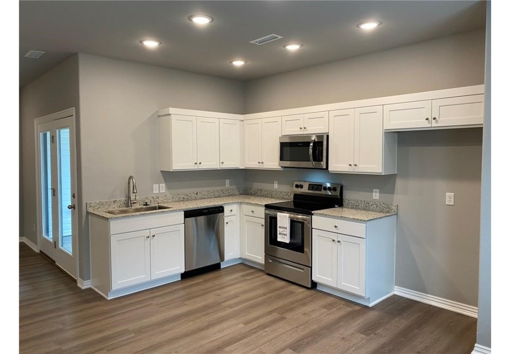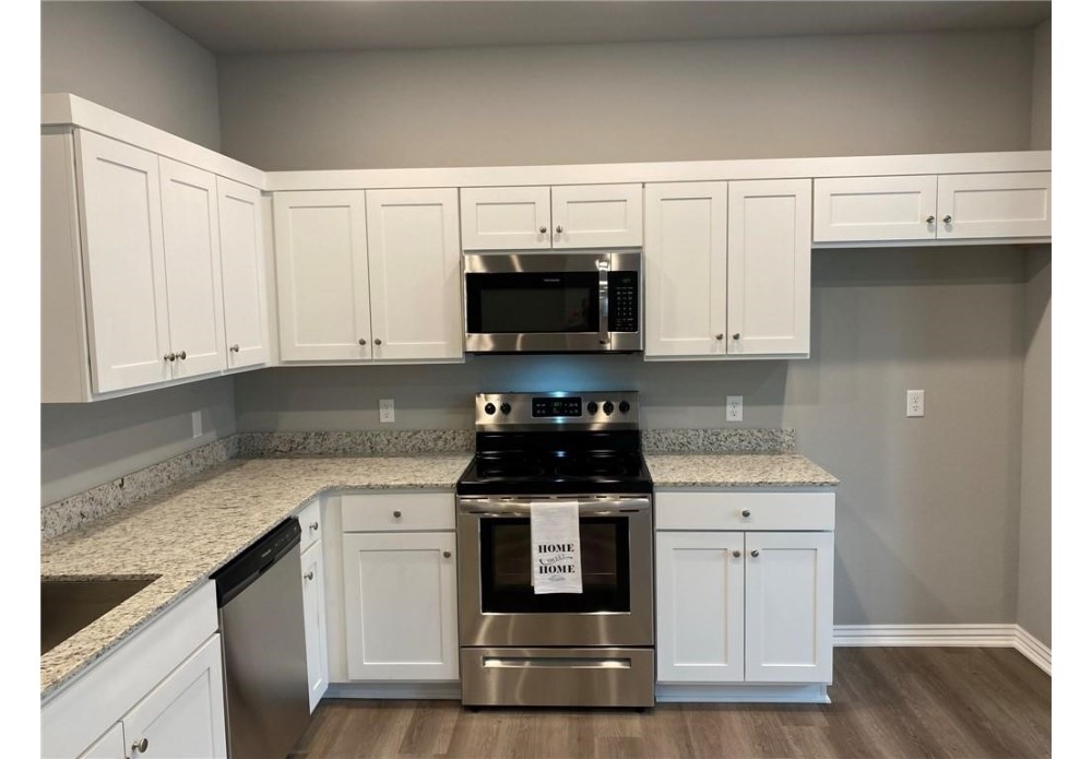 Great 3-bedroom, 2-bath home with a split floor plan and open kitchen. The primary bedroom features a large walk-in closet. Granite countertops and solid-surface flooring throughout. Appliances included are dishwasher, stove, and microwave. Fully fenced backyard.**$250 non-refundable pet fee per pet**Dogs only**