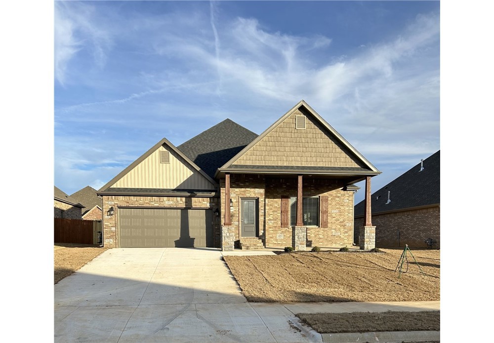 Remarkable new construction 3 bed 2 bath single story home is now available. Complete with SS built-in appliances including gas range and granite countertops. Built-in bookcases flank the shiplap detailed fireplace in the living room for the perfect architectural focal point. Windows are wood cased and have 2 1/2 in blinds installed. Large front porch, fully sodded yard, landscaping and privacy fence give the home tremendous curb appeal. The back porch is covered and home has fully installed gutters. Keyless pad on garage door for ease of access opens the garage door to a full size garage space. Master bedroom has an oversized 5 x 5 tile shower and the master closet conveniently wraps around into the laundry room located close to the garage for ease of access. Exterior brick and cedar construction for long life and ease of maintenance. Make this your next home. Mailing address is Bentonville, home located inside Centerton city limits.