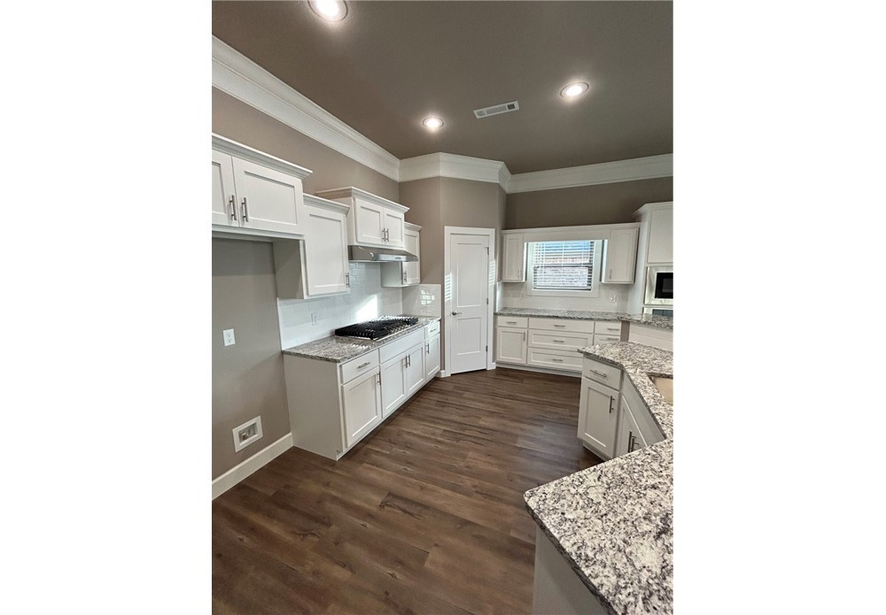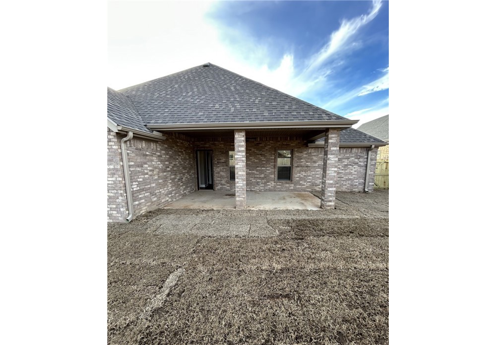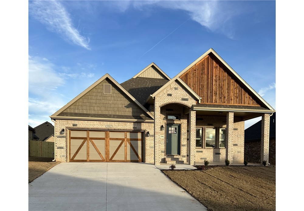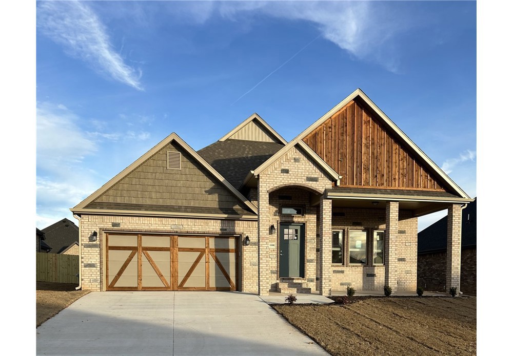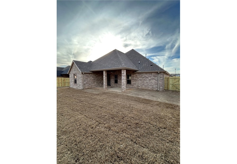 Remarkable new construction 3 bed 2.5 bath single story home now available. Complete with SS built-in appliances including gas cooktop & granite countertops. Built-in bookcases flank the fireplace for the perfect architectural focal point. Windows are wood cased & have 2 1/2 in blinds installed. Large front porch, fully sodded yard, landscaping & privacy fence provide tremendous curb appeal. Home has covered back porch & fully installed gutters. Keyless pad on garage door for ease of access to a full size garage space. Primary bathroom has an oversized 5 x 5 tile shower and the closet conveniently wraps around into the laundry room located close to the garage for ease of access. Second and third bedrooms share a Jack & Jill bathroom and there is a convenient half bath for guests. Exterior brick & cedar construction for long life ease of maintenance. Make this your next home. Mailing address is Bentonville, home located inside Centerton city limits. Photos of similar plan, interior fini