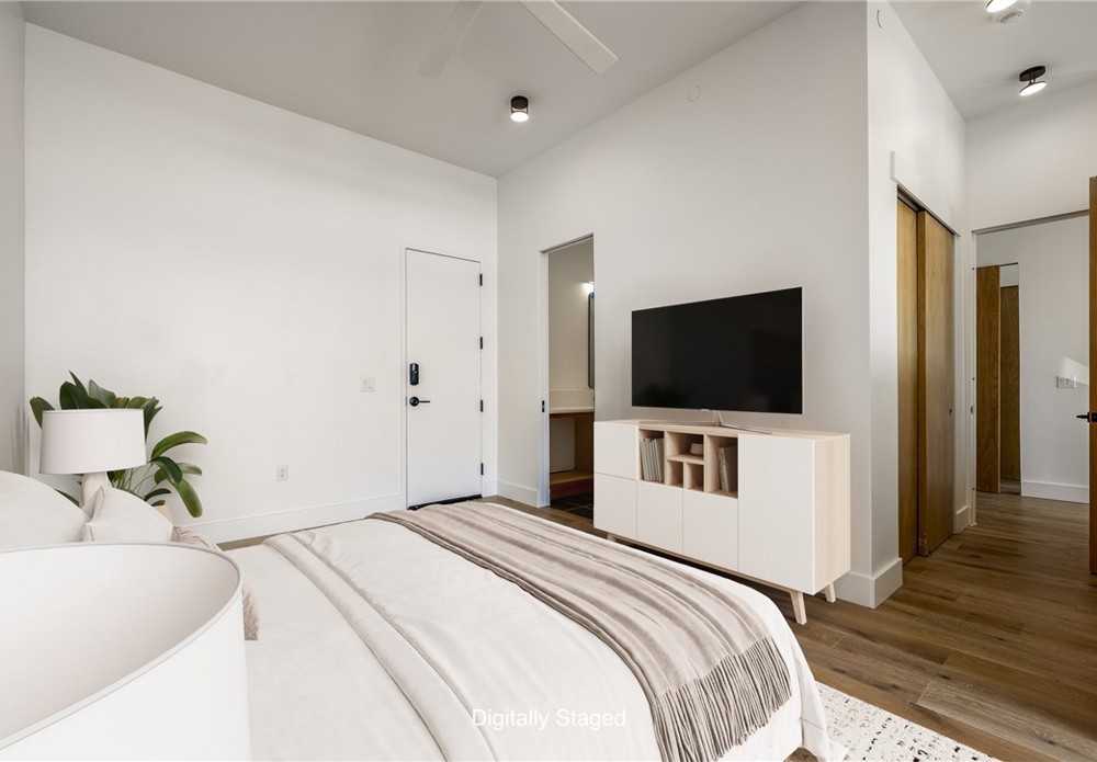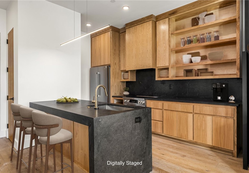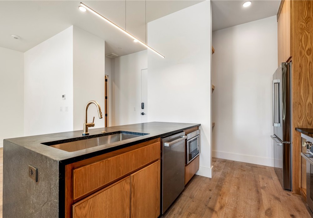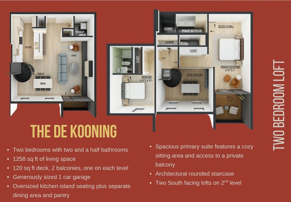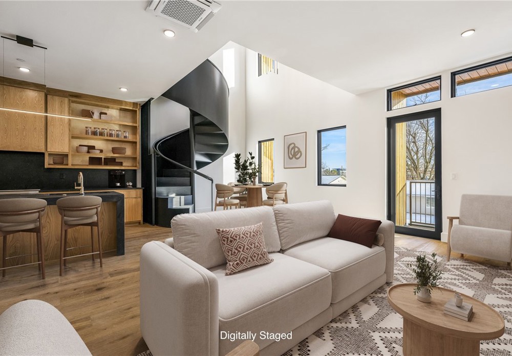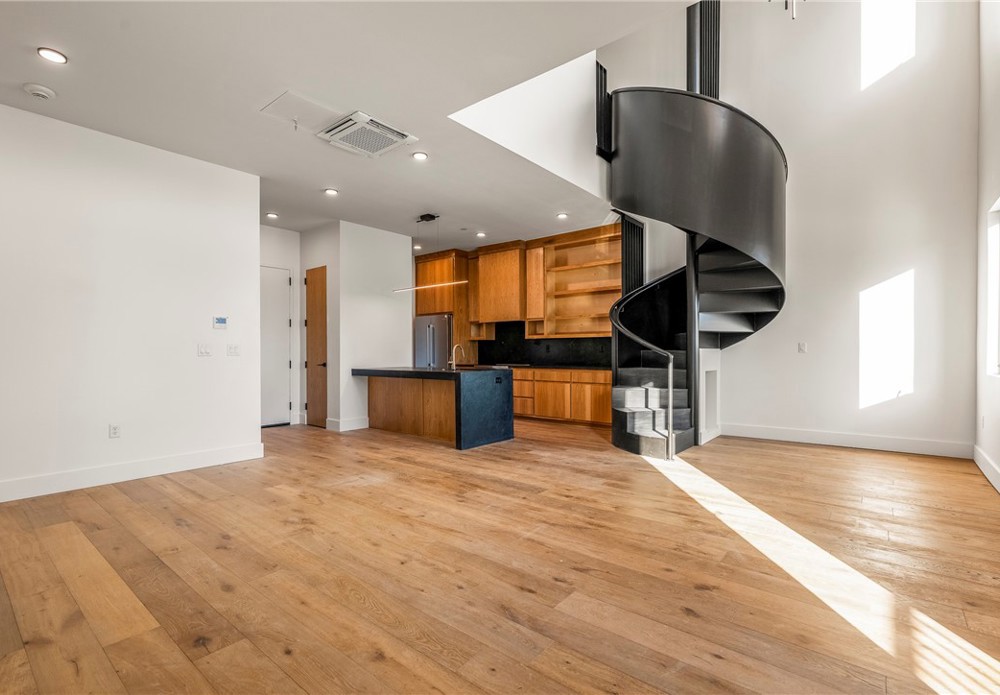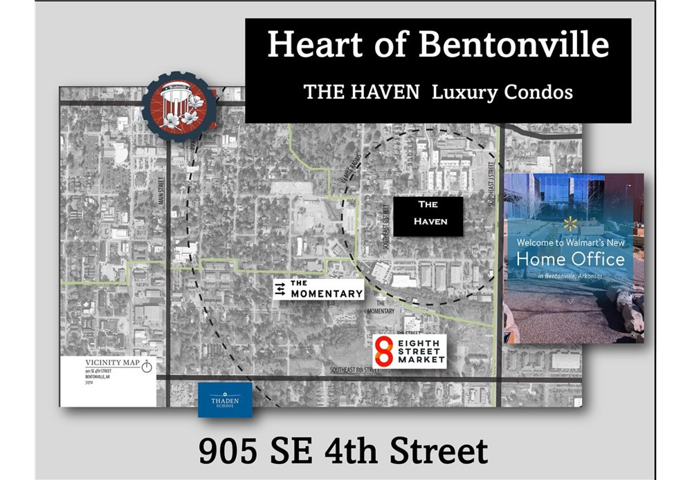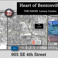 Welcome to The Haven Bentonville, a collection of 29 architecturally elevated condominiums perfectly positioned between the Downtown Square and the Walmart Home Office campus. This residence, known as the De Kooning Loft, draws inspiration from bold modern design and exceptional natural light. The home features one of the community’s most impressive kitchens, opening to a spacious living area anchored by a dramatic steel staircase that rises sculpturally into a two-story open loft. Two outdoor decks enhance the experience—one off the main living space and a private deck off the primary suite—offering views toward The Momentary and the campus. The kitchen is equipped with European-designed Bosch appliances, including an induction range and counter-depth refrigerator, granite waterfall island, and wide-plank hardwood floors throughout. The Haven offers secured access, elevator service, and an elegant lobby—an exceptional piece of modern architecture in the heart of Bentonville. Also come