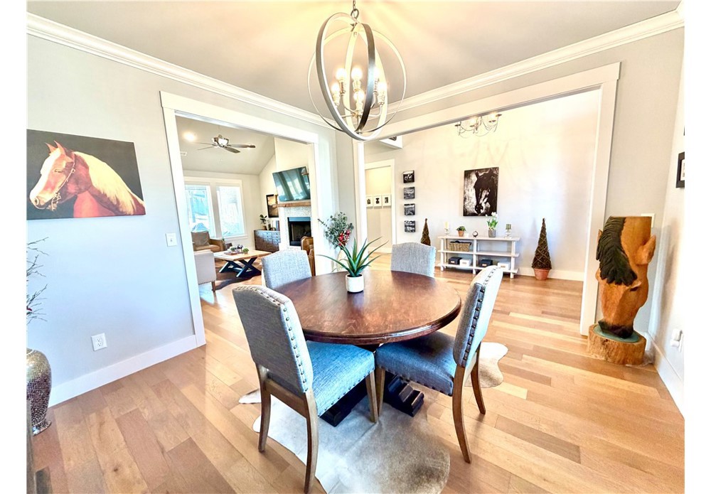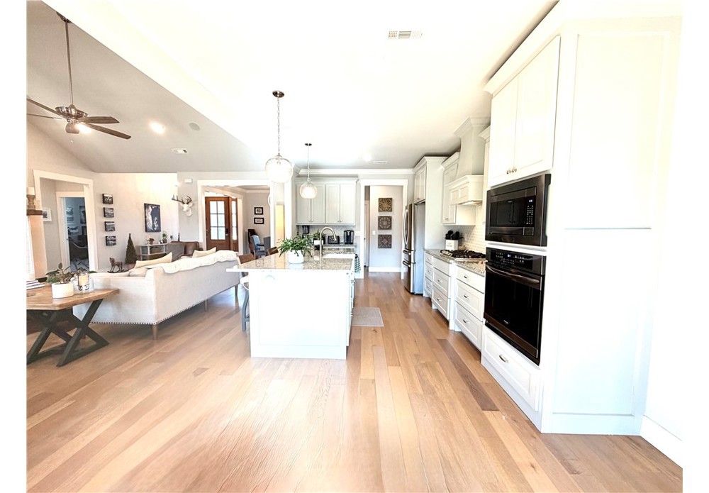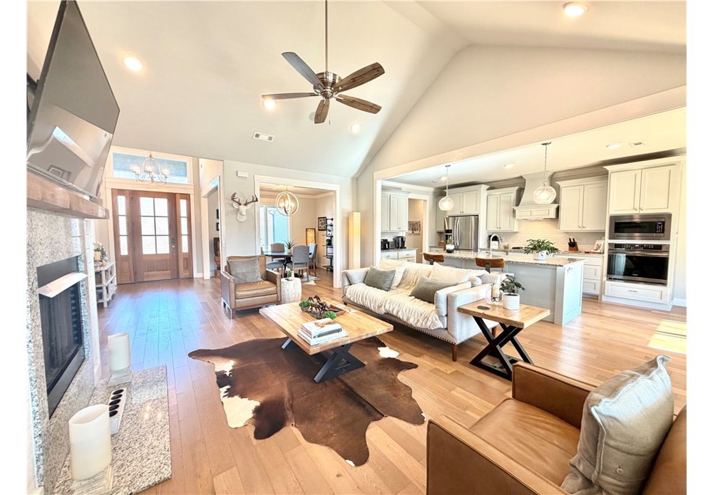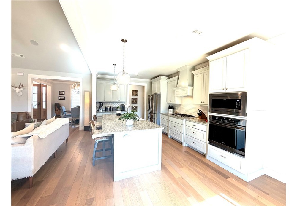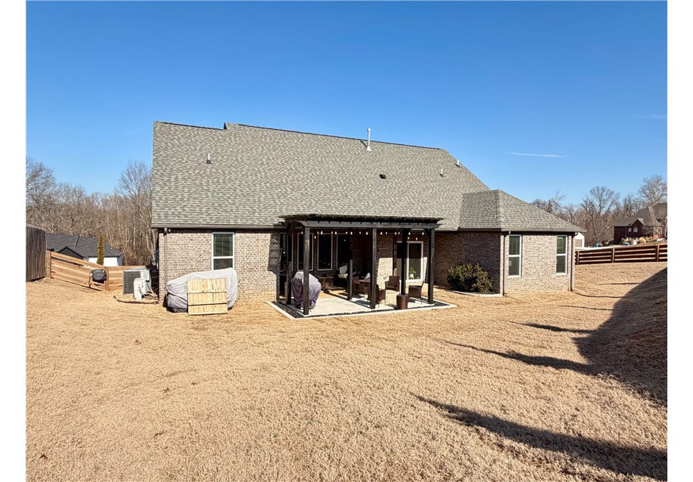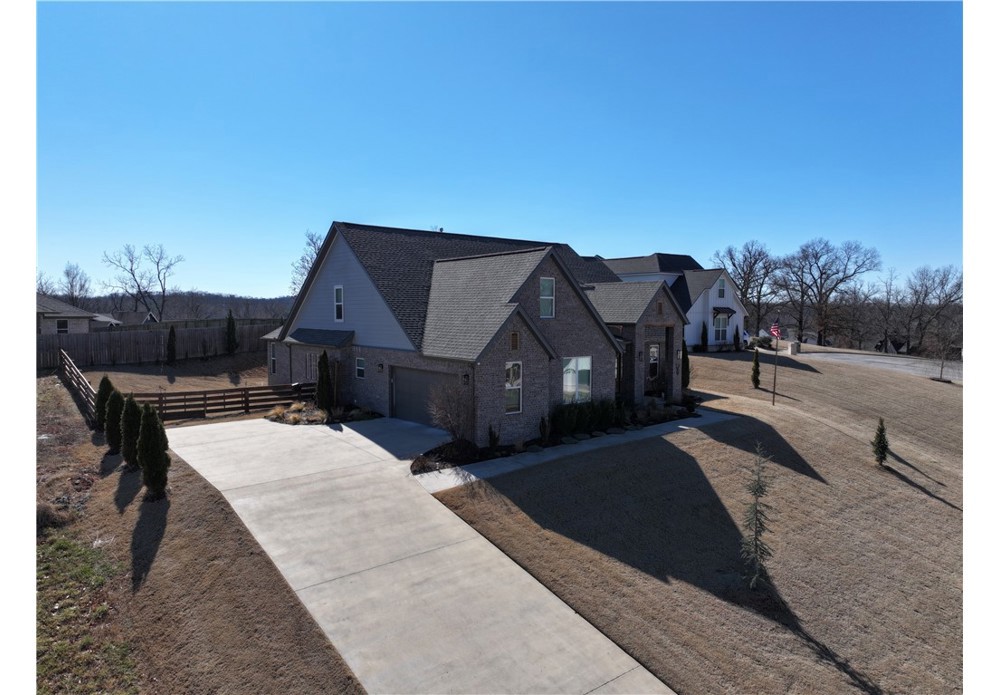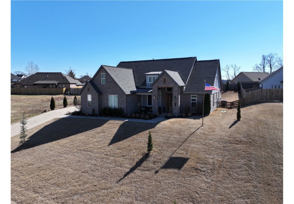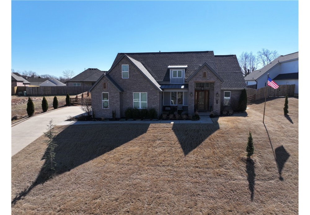 Situated on approximately 1/3 acre near Big Sugar Golf Course, this beautifully maintained 4 bedroom, 2.5 bath home offers 2,630 sq ft of thoughtfully designed living space in the Pea Ridge School District. Built in 2020, it features vaulted ceilings, wide plank hardwood floors, and a welcoming layout ideal for both everyday living and entertaining. The kitchen includes granite countertops, stainless steel appliances, gas cooktop, oversized island, and a spacious walk-in pantry. A formal dining room and option for a dedicated office space provide flexibility and function. The primary suite offers a private retreat, while additional bedrooms are well positioned for family or guests. Enjoy the covered back patio overlooking the backyard with room to relax, play, or host gatherings. Move-in ready and lovingly cared for, this home offers space, comfort, and a fantastic location.