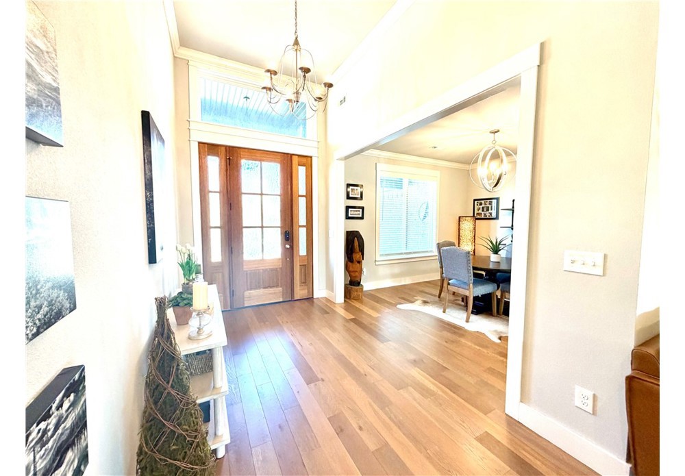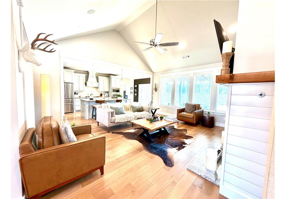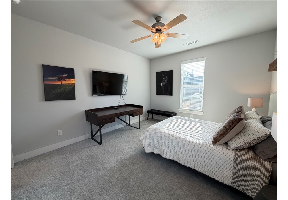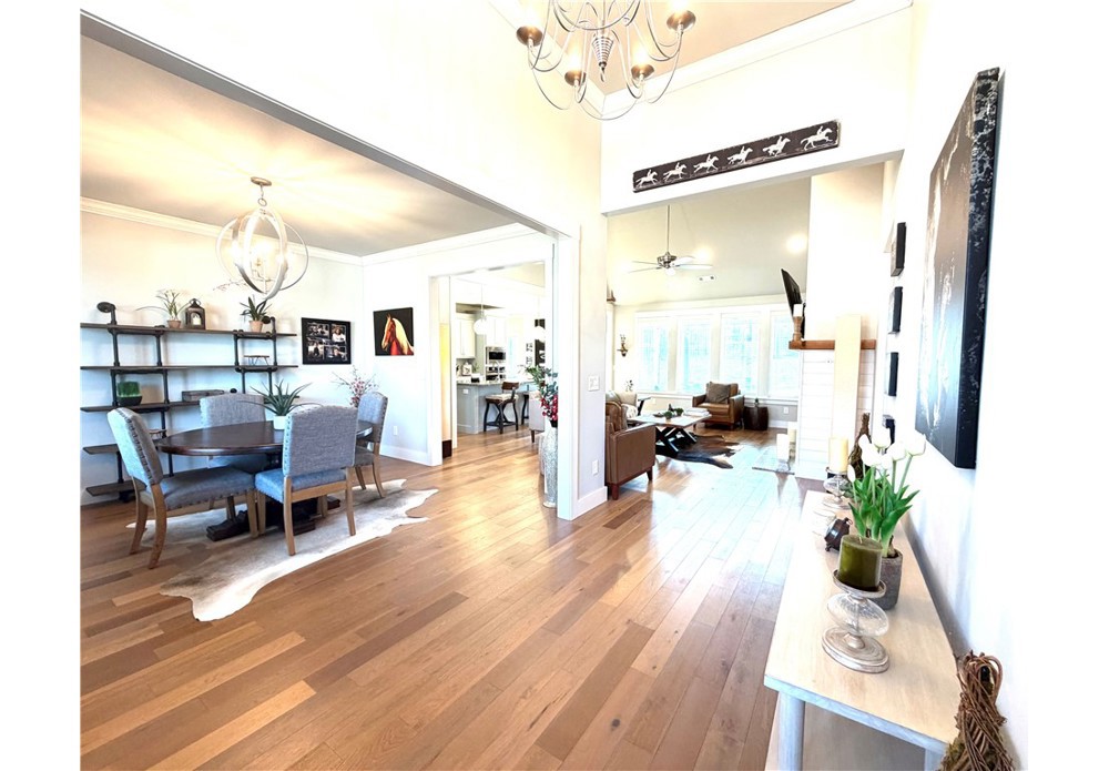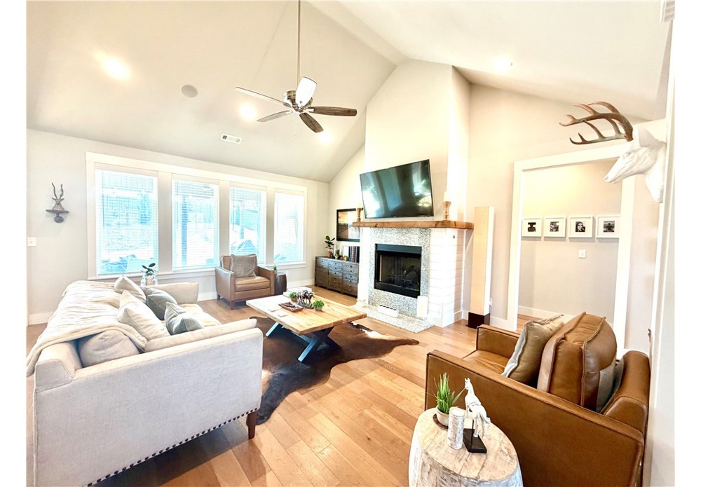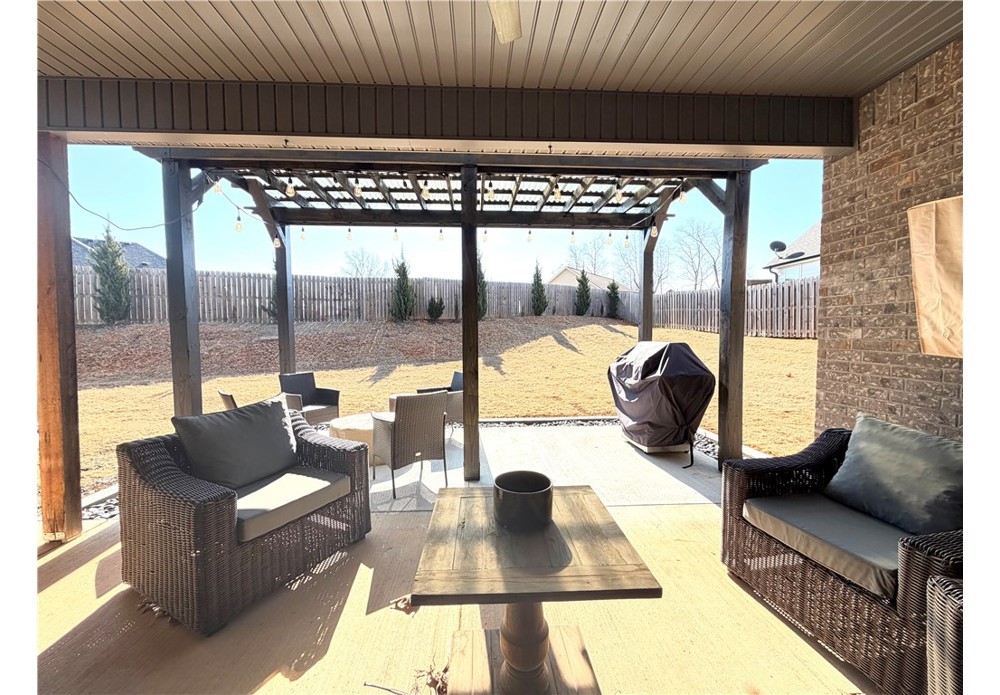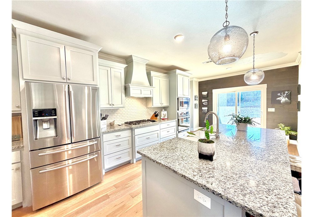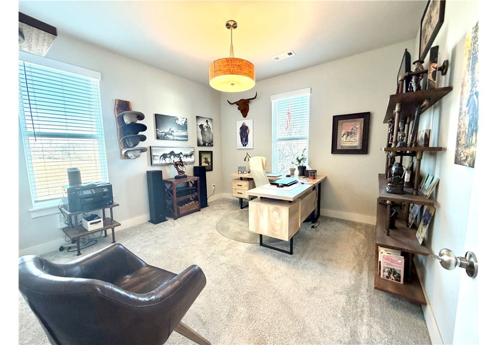 Situated on approximately 1/3 acre near Big Sugar Golf Course, this beautifully maintained 4 bedroom, 2.5 bath home offers 2,630 sq ft of thoughtfully designed living space in the Pea Ridge School District. Built in 2020, it features vaulted ceilings, wide plank hardwood floors, and a welcoming layout ideal for both everyday living and entertaining. The kitchen includes granite countertops, stainless steel appliances, gas cooktop, oversized island, and a spacious walk-in pantry. A formal dining room and option for a dedicated office space provide flexibility and function. The primary suite offers a private retreat, while additional bedrooms are well positioned for family or guests. Enjoy the covered back patio overlooking the backyard with room to relax, play, or host gatherings. Move-in ready and lovingly cared for, this home offers space, comfort, and a fantastic location.