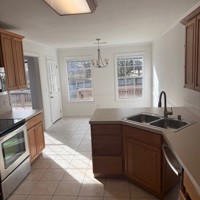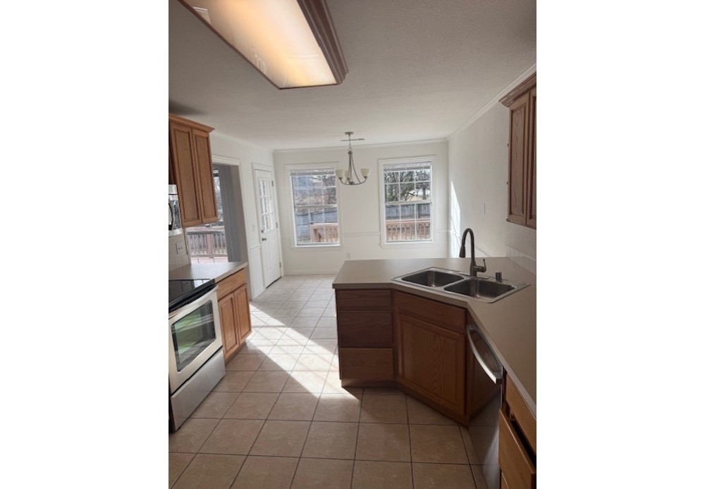 3 bedroom 2 bath with dinning room wood floors with carpet tile brand new condition completely remodeled eat in kitchen with bar walk in closets large deck with large lot 2 car garage