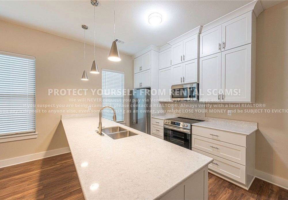 COMING SOON! Available approx. 6/11/26! Don't miss out on this charming 2 bedroom, 1 1/2 bathroom duplex is close to trails, eateries, shopping, and the University of Arkansas. Head into this ground level unit through the French doors and into the open concept living room & kitchen featuring a quartz breakfast bar, double sink, ample modern cabinets, and stainless steel appliances. High ceilings and LVP flooring throughout the living area accentuate the modern vibe. Check out the spacious bedrooms with carpeting, ceiling fans, and roomy closets. Flow over to the primary bathroom with quartz countertops, walk-in shower, and on-demand water heater. Washer and dryer are included, along with private off-street parking at no additional cost. *Small pets only. Pets negotiable. *Available date may change. Property is tenant occupied - do not disturb the tenant. **Tenant is responsible for all utilities
