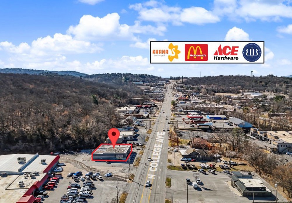 High-visibility retail/office space available for lease on N College Ave, Fayetteville’s primary commercial corridor! This space is currently configured with four private offices and a retail showroom, providing a functional layout for professional office, medical, service, or boutique retail users. This property offers exceptional frontage and strong brand visibility in a well-established trade area. Floor plan can be reconfigured to accommodate a tenant’s specific operational needs. Prominent two-sided building signage. Ample on-site parking. Location sees approximately 29,500 vehicles per day. Immediate availability.