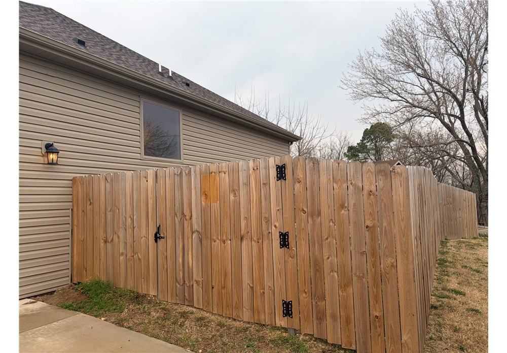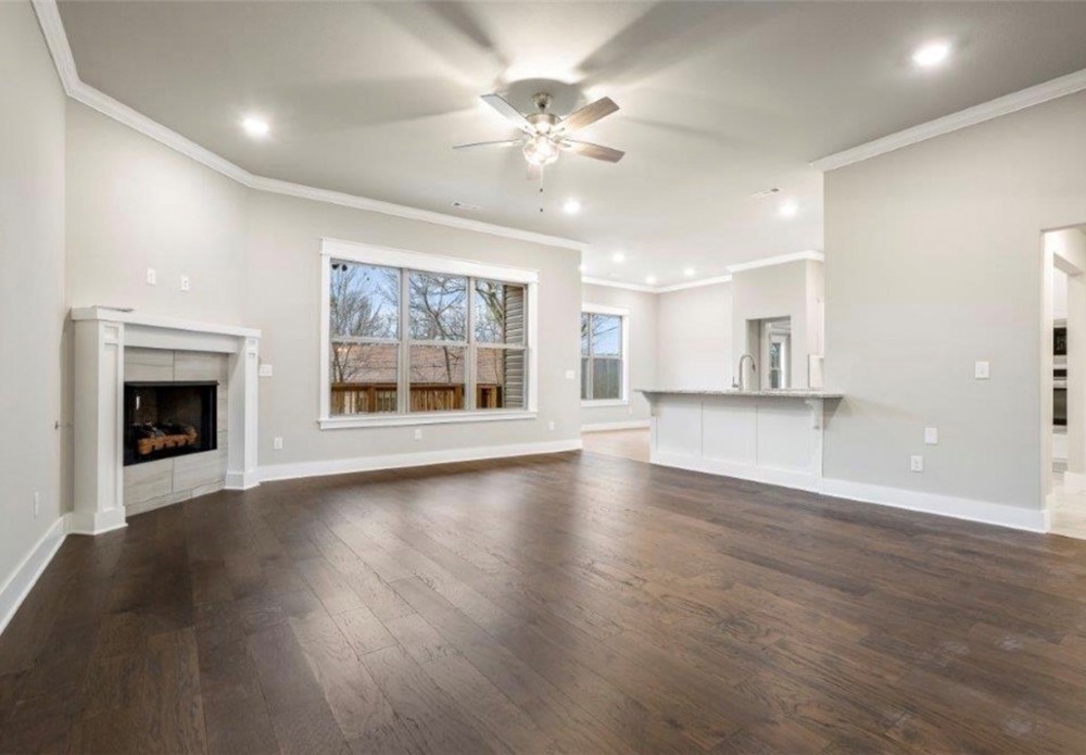 Stunning 2024-built home on a corner lot in Bentonville School District. 3 bedrooms, 2 baths, and 2,032 square feet. This split-bedroom floor plan blends modern comfort with everyday functionality. Open-concept living, dining, and kitchen area filled with natural light and elevated finishes throughout. Hardwood floors and gas log fireplace create a warm focal point. Kitchen boasts granite countertops, custom cabinetry, a spacious pantry, and a large island. Primary suite features a spa-inspired bath with dual vanities, custom tile shower, soaking tub, and a walk-in closet that connects to Laundry Room. Covered Deck, flat, and fully fenced yard — perfect for relaxing after a ride or hosting friends. Garage features tall ceilings and space for bikes, tools, and all your outdoor gear. Located mins from Bella Vista’s Mountain Biking Trail Systems and NEW Bike Lift access, this home is a dream basecamp for outdoor enthusiasts. Quick access to trails, lakes, golf, and everything that makes NWA so special!