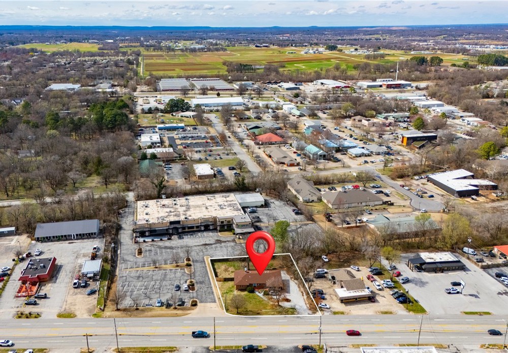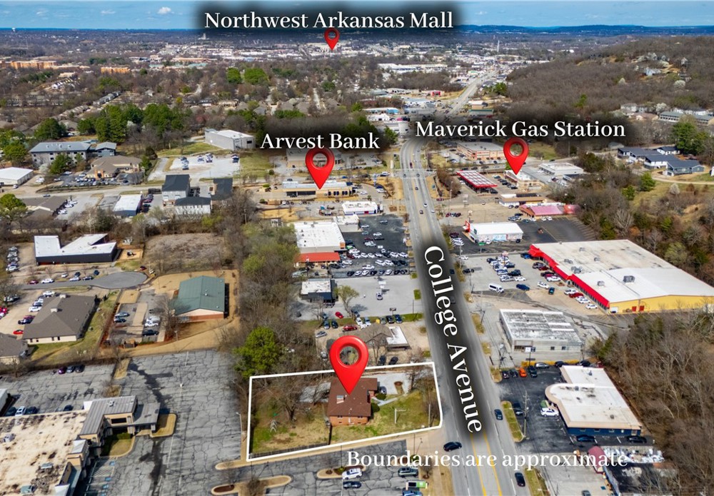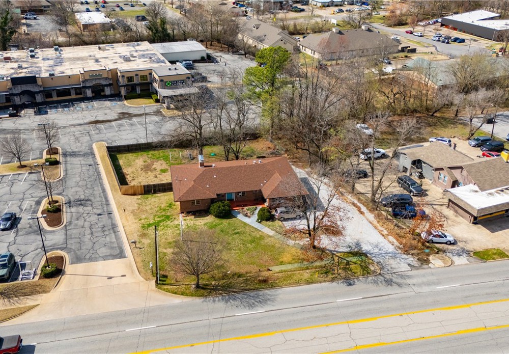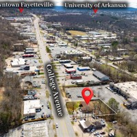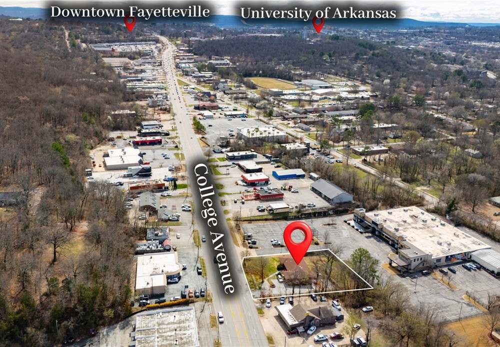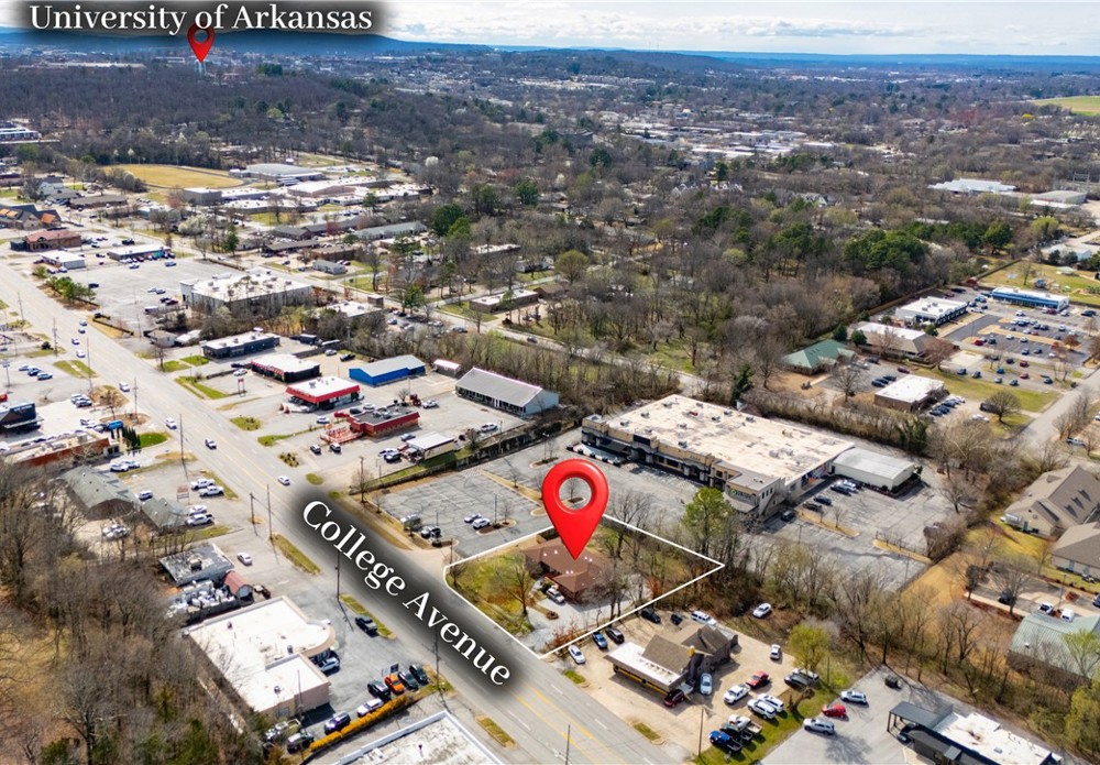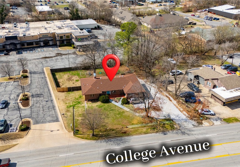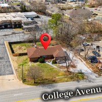 Unbeatable visibility directly on College Ave with 29,000 daily traffic count. The 3,447 sqft building, built in 1957, blends functional workspace with authentic mid century charm, featuring abundant natural light, original hardwood floors, and built ins throughout. The flexible layout could accommodate up to 10 private offices or studios, serve as a spacious headquarters for an owner occupant business, or be re-imagined into endless uses. Situated on a .47 acre lot, the property also includes a large fenced backyard, creating rare flexibility for park-like outdoor applications, future expansion, or additional parking. A unique opportunity for an investor or business owner to establish a highly visible Fayetteville presence in a character-filled space with room to grow.