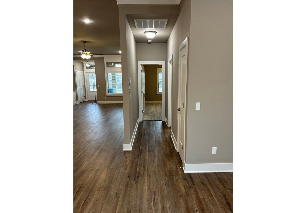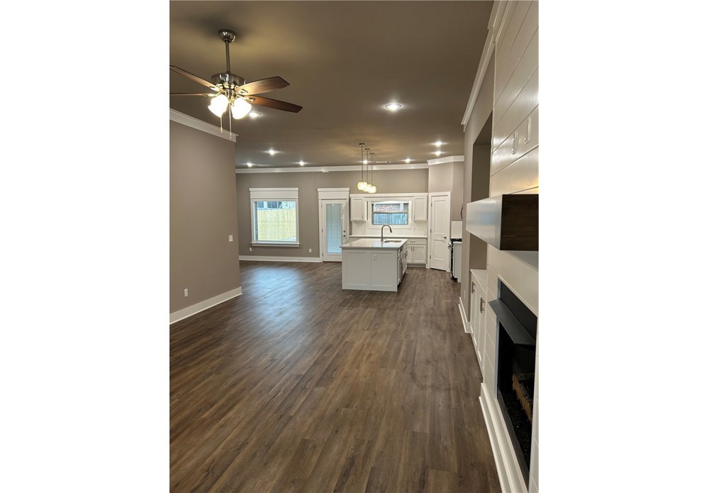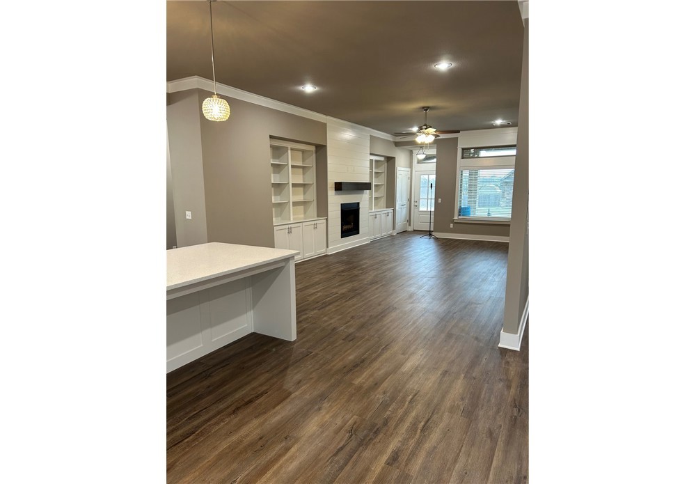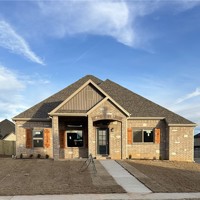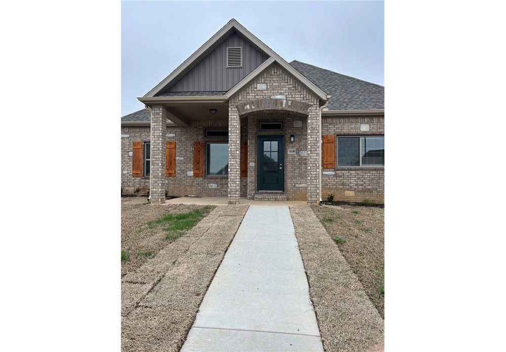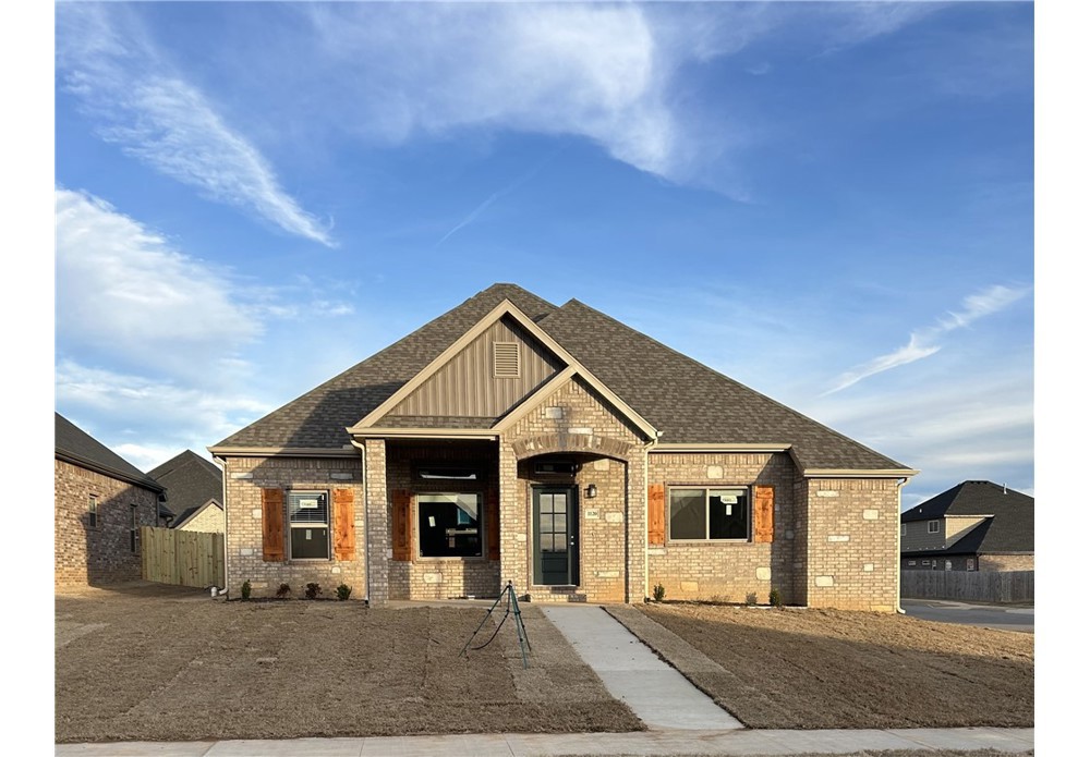 Stunning new construction—this single-story home on a corner lot features 3 bedrooms, 2.5 bathrooms, and a spacious 3-car garage. The kitchen is equipped with stainless steel appliances, a gas range, microwave vent hood, pantry, and granite countertops. A large fireplace with shiplap detail is flanked with built-in bookshelves serves as a striking centerpiece in the living room. Elegant details include wood-cased windows with 2-inch blinds throughout. Enjoy great curb appeal with a large front porch, fully sodded oversized yard, and a privacy fence. The covered back porch and fully installed gutters add both comfort and functionality. A keyless garage door pad offers convenient access. The primary suite boasts an oversized tiled shower and a walk-in closet that connects directly to the laundry room, located near the garage for added convenience. Durable brick exterior construction ensures longevity and low maintenance. Mailing address is Bentonville, home located inside Centerton city limits