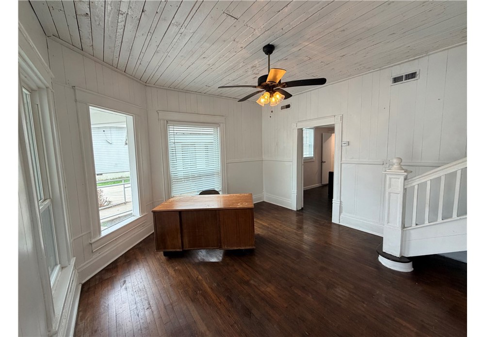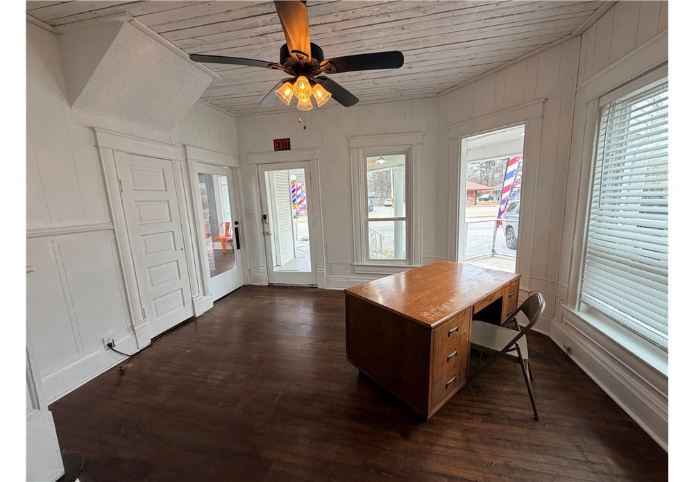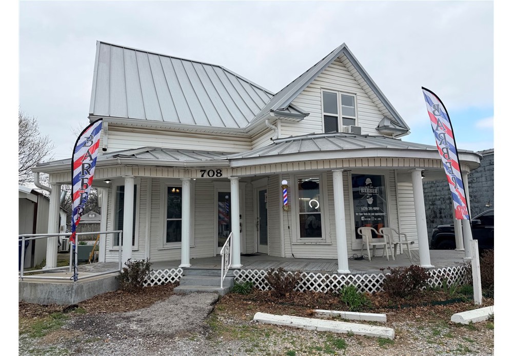 Historic commercial space for lease in a high-visibility location at 708 S. Mt. Olive St. in Siloam Springs! Originally built around 1904 and recently remodeled, this 1,316 sq ft space offers 3 private offices, 2 common areas (reception/waiting areas), 2 full bathrooms, and a kitchen/break area. Ideal for professional uses such as insurance, legal, accounting, medical/eye care, salon, or other office services. Lease Options: $1,650/month for entire space or $375/month per office. Utilities: Currently approx. $200/month and includes water, sewer, trash, electricity, natural gas, and business high-speed internet (prorated annually). One upstairs office not included in lease is currently occupied by a non-profit. Great opportunity for professional office space on one of Siloam Springs’ busiest streets!