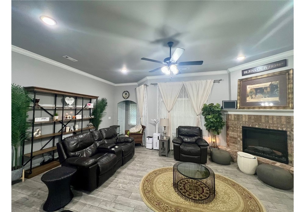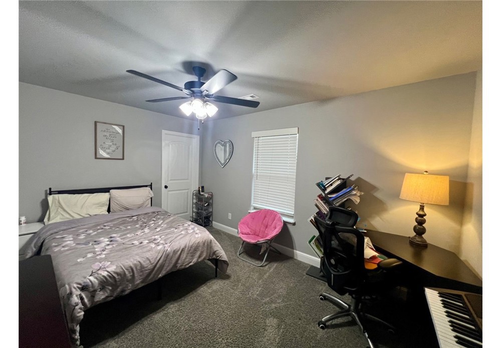 Located in the desirable Pines at Orchard Park subdivision in Centerton, this spacious 4-bedroom, 3-bath home at 2350 Cameo Ln offers approximately 2,576 square feet of comfortable living space with a thoughtfully designed layout. The home features an open living area that flows seamlessly into the kitchen and dining spaces, creating a functional setting for everyday living and entertaining. The kitchen includes generous counter space, bar seating, and ample cabinetry, while the living room provides a warm focal point with a fireplace. The primary suite offers a relaxing retreat with dual vanities, a walk-in closet, and a separate tub and shower. Three additional bedrooms provide flexibility for guests and family. It also has a dedicated office at the front of the home. Conveniently located within the Bentonville School District and just a short drive to Bentonville, this home provides easy access to shopping, dining, and major Northwest Arkansas employers while maintaining a quiet neighborhood setting.