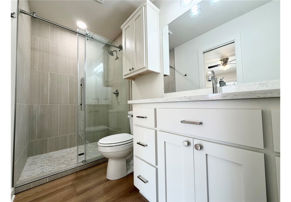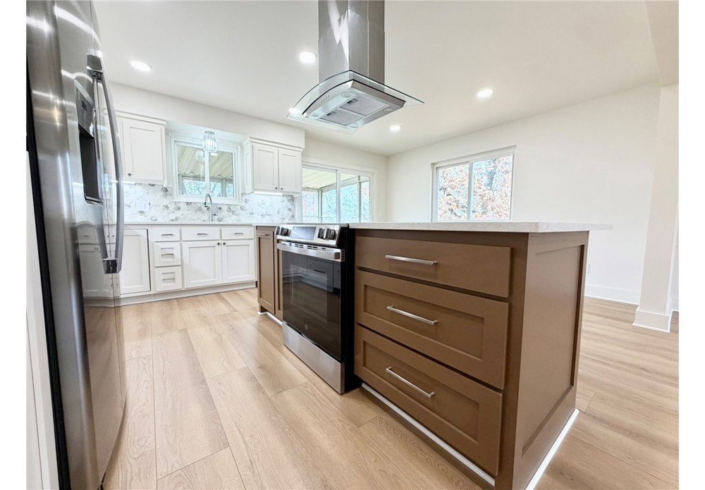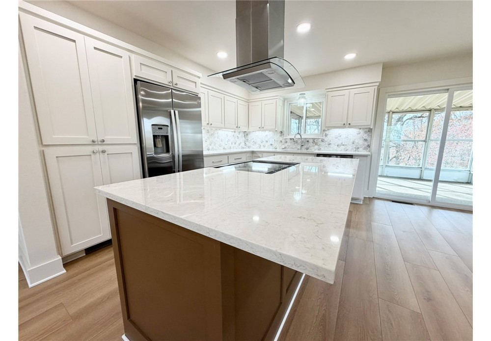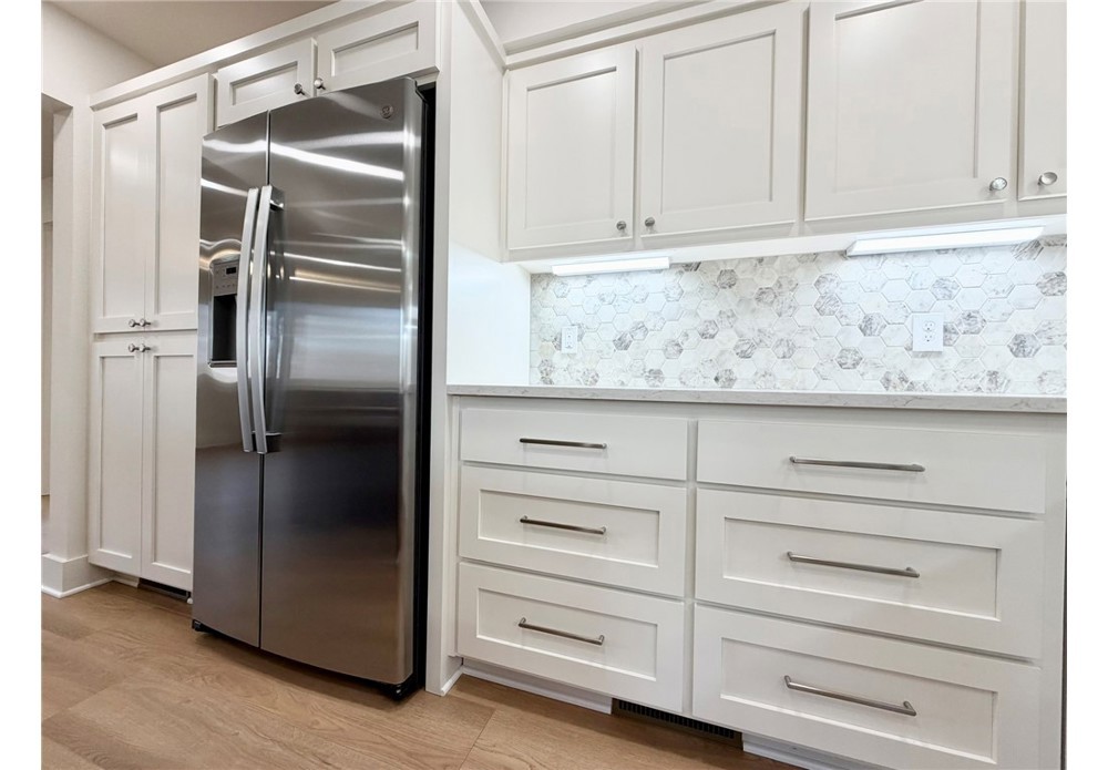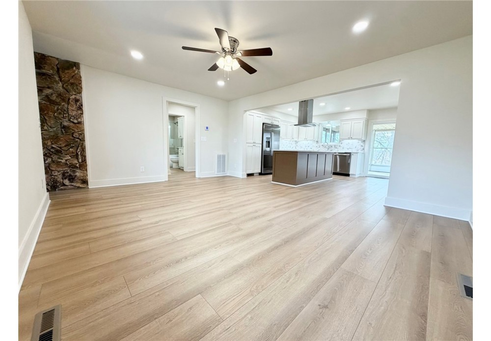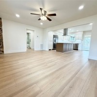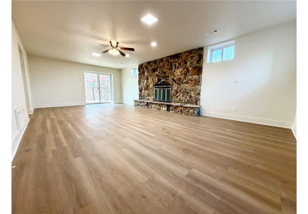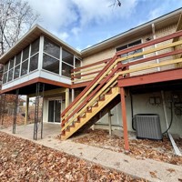 Beautifully Remodeled Duplex near Beaver Lake. Wood style flooring throughout, All new kitchen with quartz counters and stainless appliances opens into living room. Additional family room with fireplace. Bathrooms feature tile surrounds and shower. Large storage area on bottom level. Large enclosed porch with additional open deck. Yard is fenced.