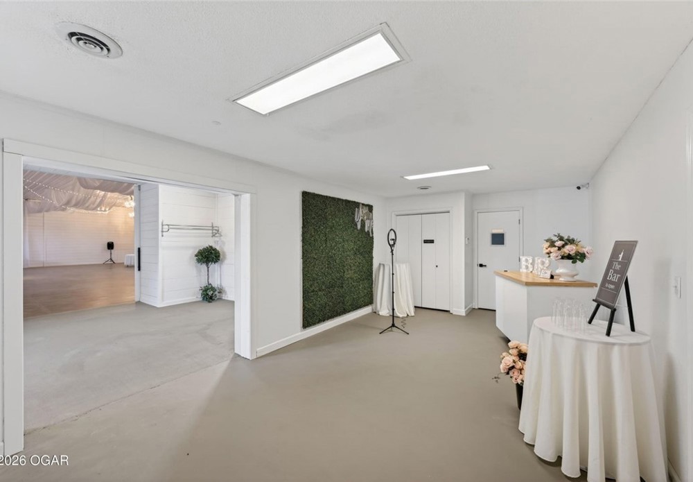 Strategically located near Interstate 44 and the Joplin medical corridor, this highly versatile commercial property offers an exceptional opportunity for investors or owner-users seeking scale, accessibility, and adaptive reuse potential. The building features approximately 7,318 square feet with a functional layout that supports a wide range of business models including medical, professional, event, educational, or institutional use. The interior configuration includes large open areas, multiple private rooms or suites, restroom facilities, and a kitchen/breakroom component -- providing immediate usability with minimal reconfiguration required for many operations. The property's proximity to major healthcare facilities makes it particularly attractive for medical offices, outpatient services, therapy providers, or medical storage while interstate access enhances regional convenience for clients, staff, and logistics. Buyer to independently verify zoning, permitted uses, and any applicable municipal ordinances.