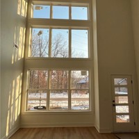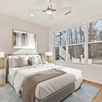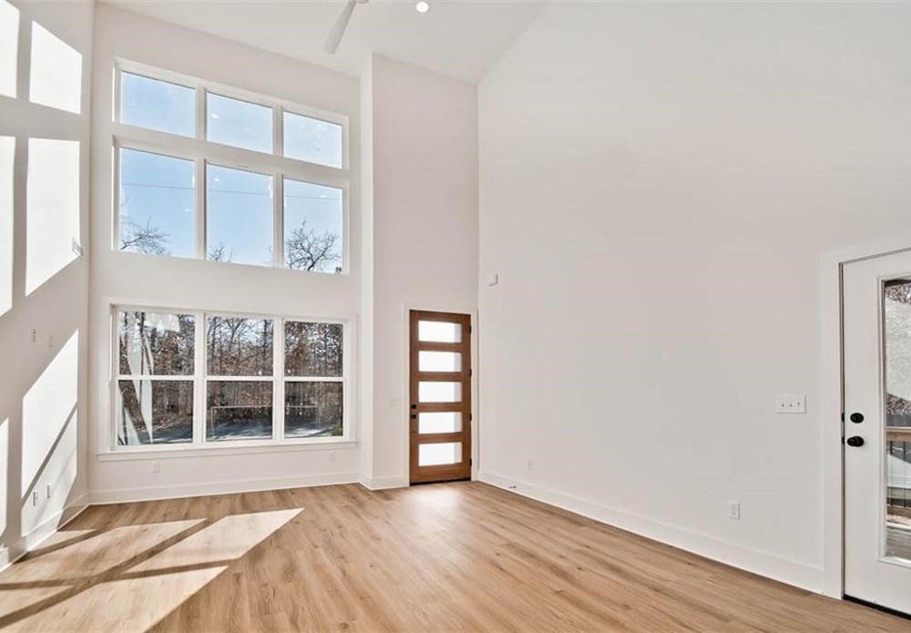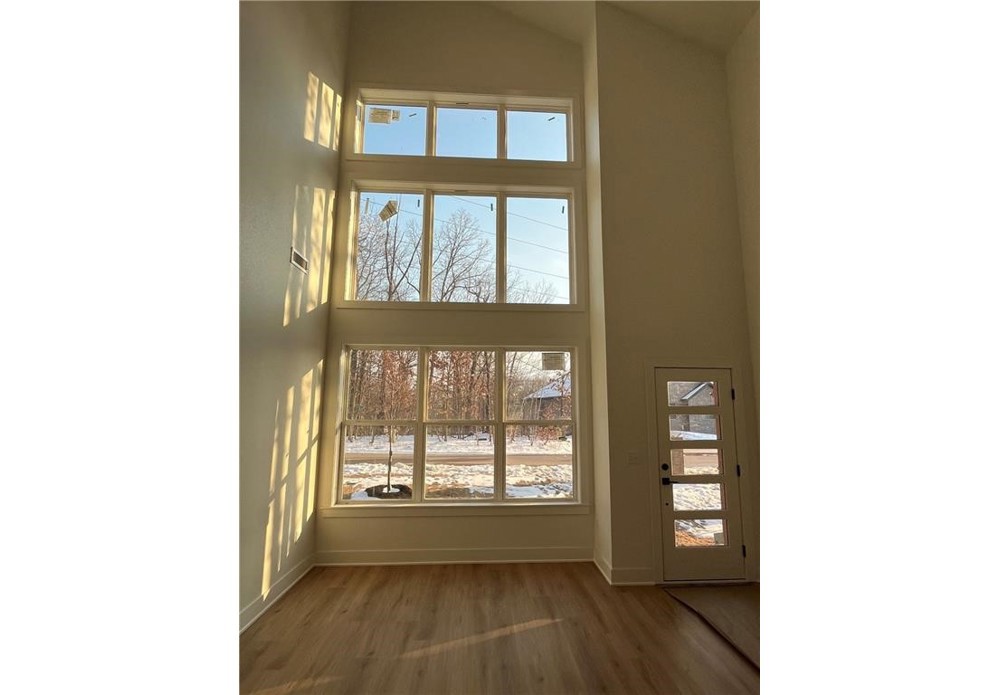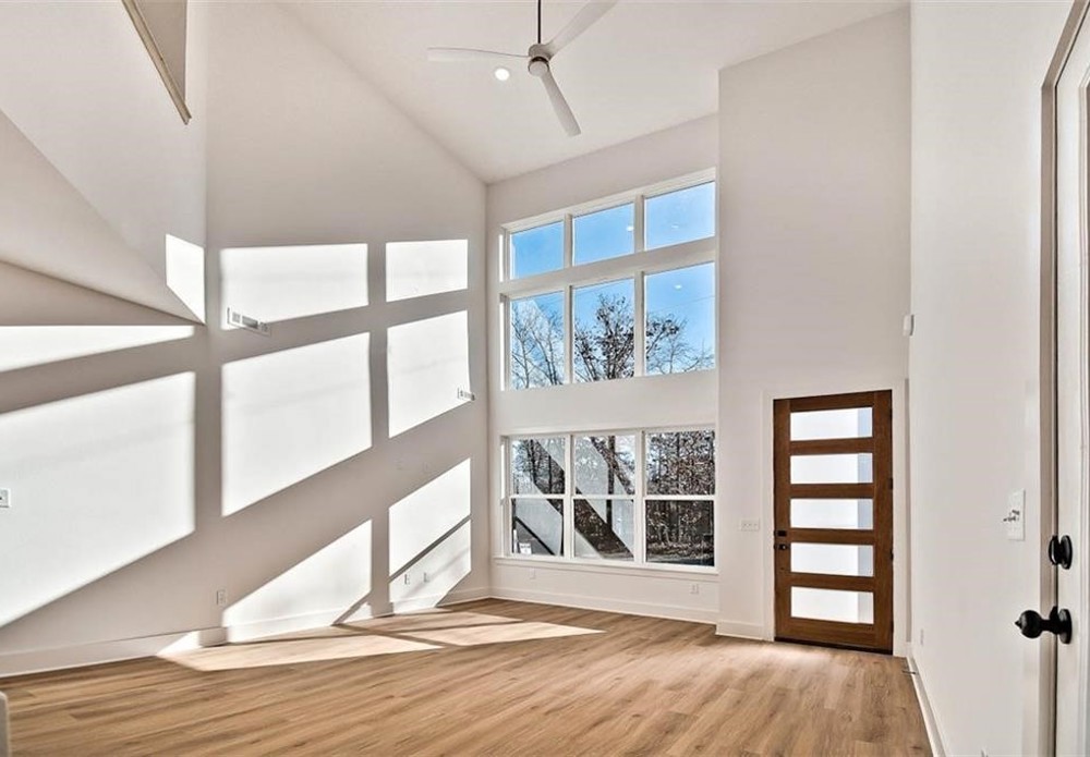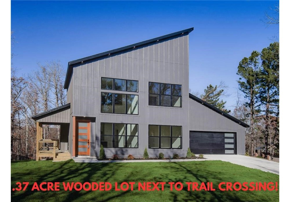 This modern new construction home sits on a large .37 acre wooded lot next to the Taylor Homestead Trail Crossing! Bentonville schools! This stunning home showcases modern custom finishes throughout! 2BD's + office. Step inside to discover beautiful floor-to-ceiling custom cabinets and a huge waterfall island, perfect for entertaining family and friends. The kitchen is also equipped with stainless steel appliances, including a gas range. No carpet! Breathtaking two-story living room with huge windows going up to the ceiling! Retreat to the primary suite with a stunning walk-in tile shower that elevates your everyday routine. Guest bedroom is located on the main level.