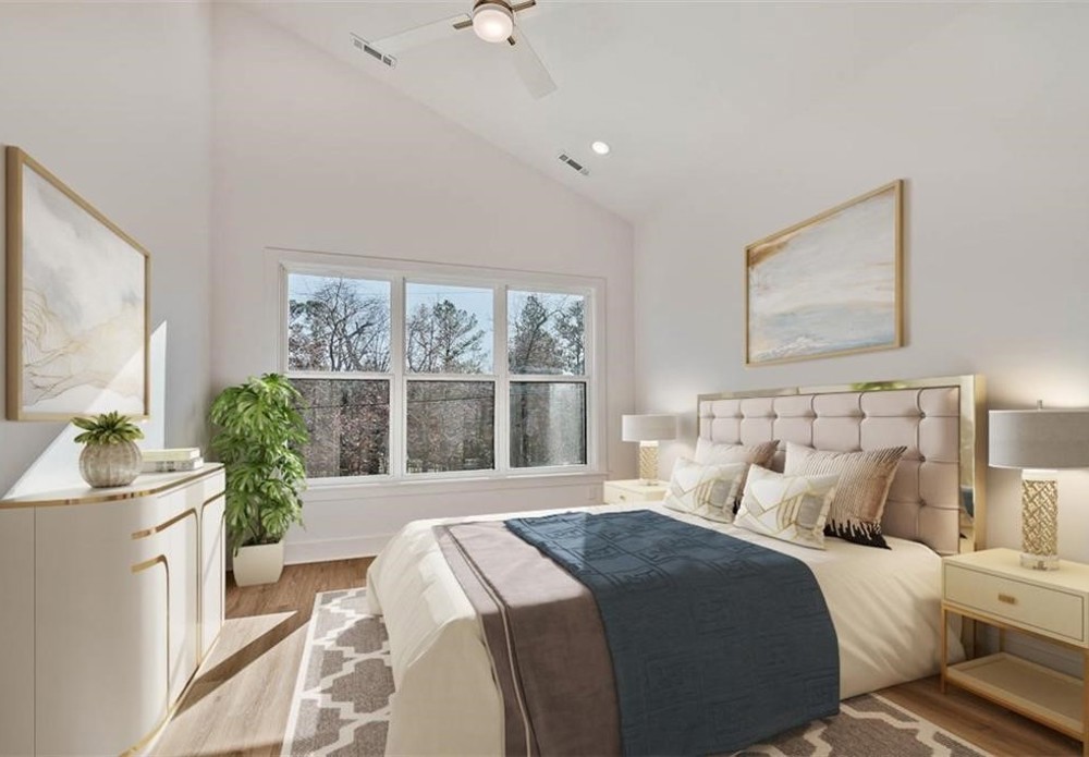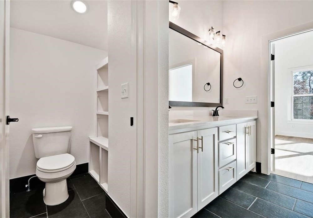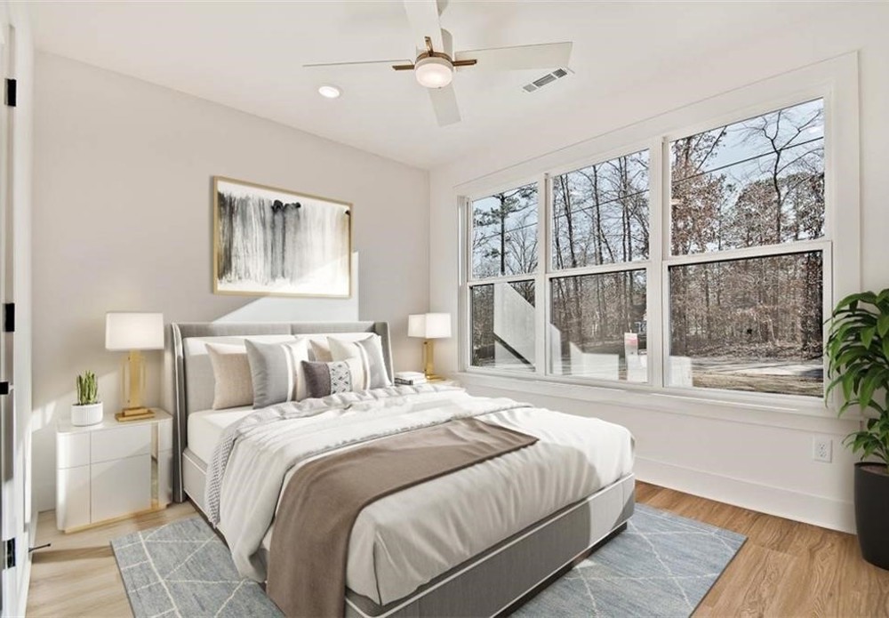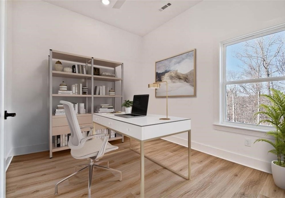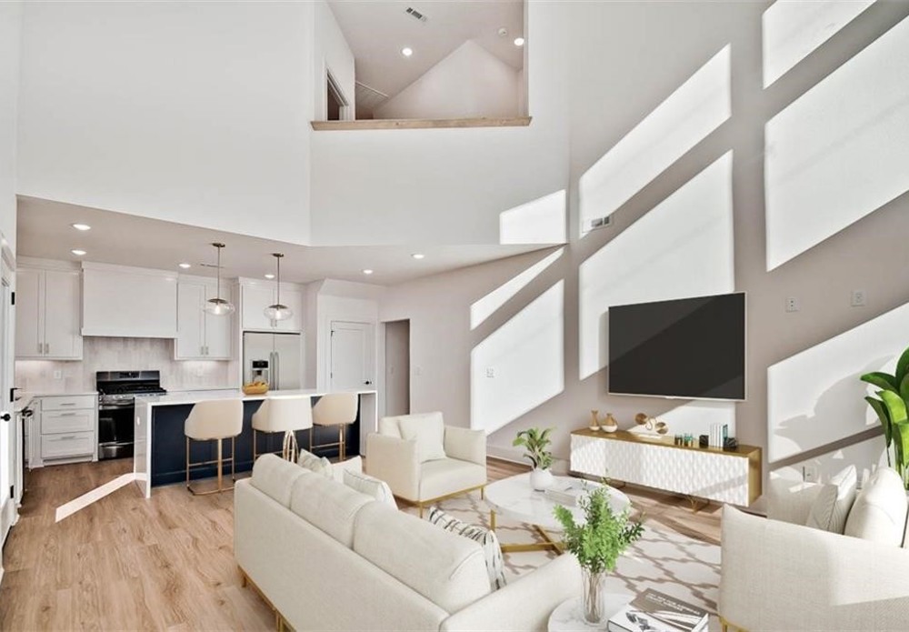 This modern new construction home sits on a large .37 acre wooded lot next to the Taylor Homestead Trail Crossing! Bentonville schools! This stunning home showcases modern custom finishes throughout! 2BD's + office. Step inside to discover beautiful floor-to-ceiling custom cabinets and a huge waterfall island, perfect for entertaining family and friends. The kitchen is also equipped with stainless steel appliances, including a gas range. No carpet! Breathtaking two-story living room with huge windows going up to the ceiling! Retreat to the primary suite with a stunning walk-in tile shower that elevates your everyday routine. Guest bedroom is located on the main level.