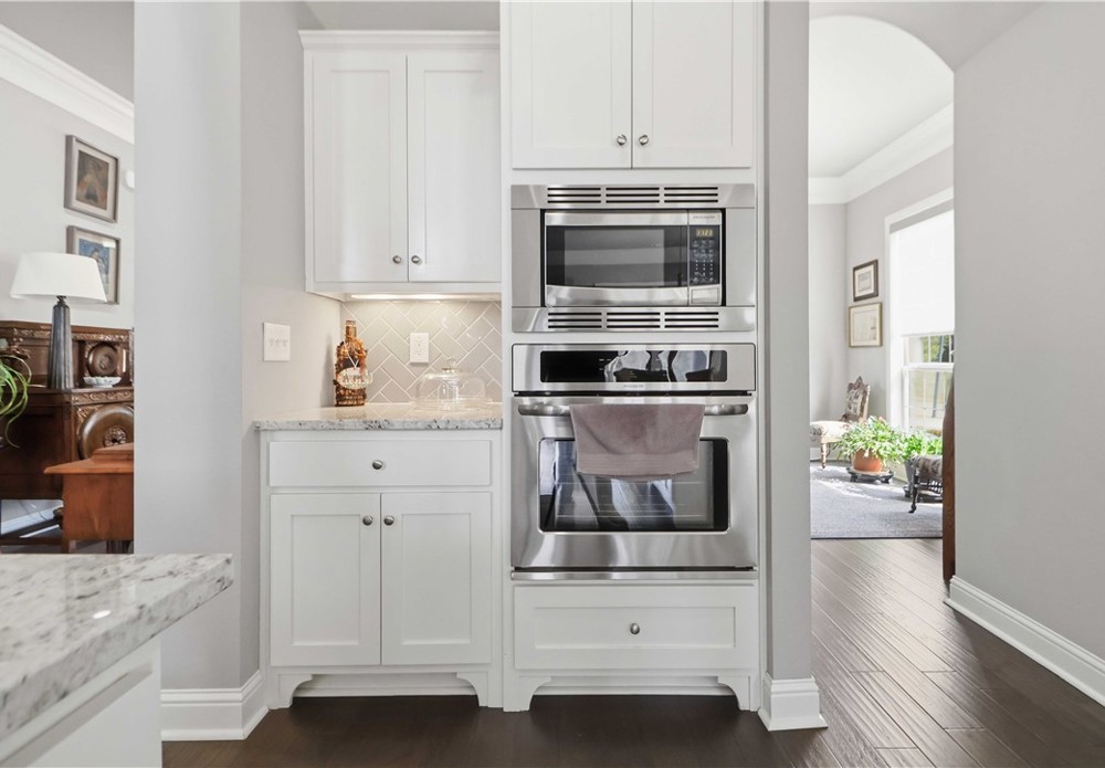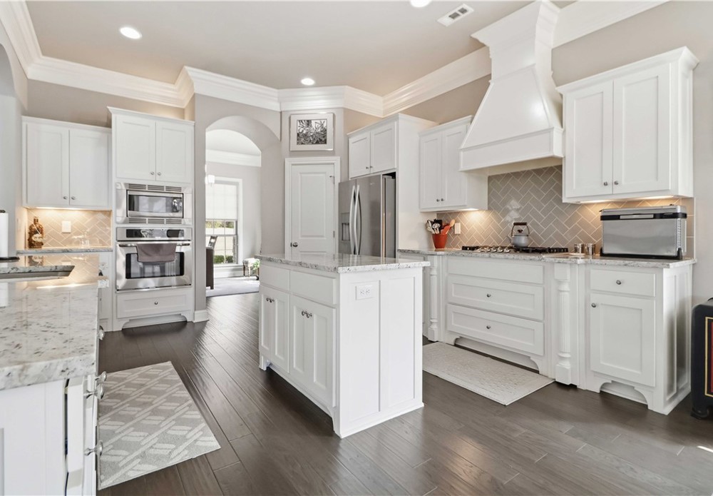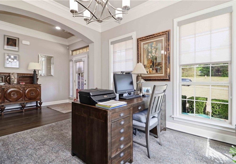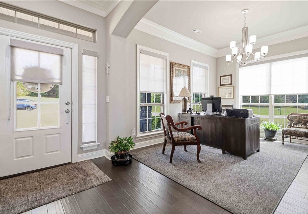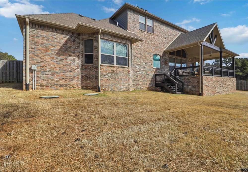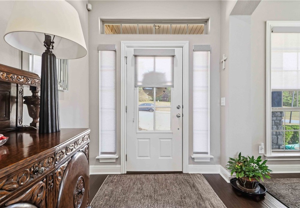 Nestled in one of East Fayetteville's most sought-after s/d's, this stunning estate-style home offers 3,100 SF of thoughtfully designed living space featuring 4 bedrooms, 3.5 bathrooms, & a 3-car garage.The two-story living room commands attention with floor-to-ceiling windows, rich hardwood floors, elegant crown molding, built-in cabinetry, & a gas log fireplace.The open-concept gourmet kitchen is a chef's dream, appointed with white cabinetry, stainless steel appliances, a center island, breakfast nook, & a raised granite bar- all flowing seamlessly into the main living areas and formal dining room.The main-level primary suite includes beautiful bay windows, a spacious walk-in closet,& a spa-inspired en suite with a walk-in shower, whirlpool tub, & double vanity. Upstairs features 3 br, a jack-and-jill bath,& a bonus living area.Step outside to an oversized covered patio & fenced backyard — a private setting perfect for relaxing. Other amenities include plumbing roughed in for central vac & wired security system