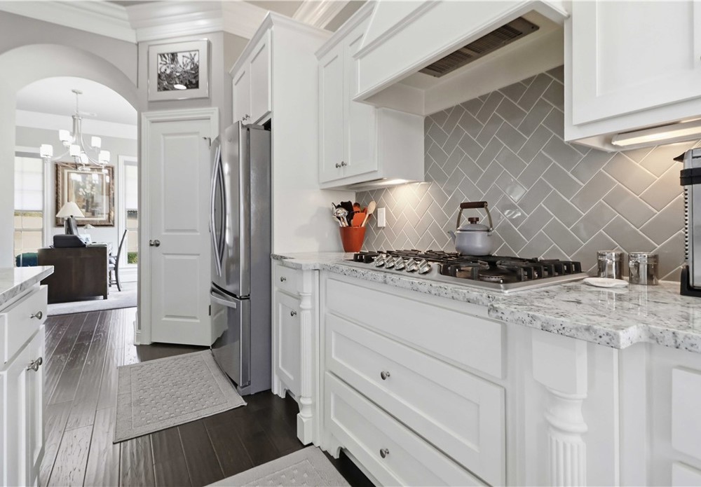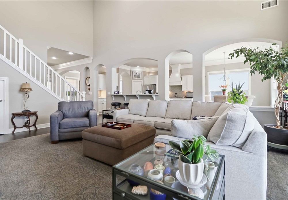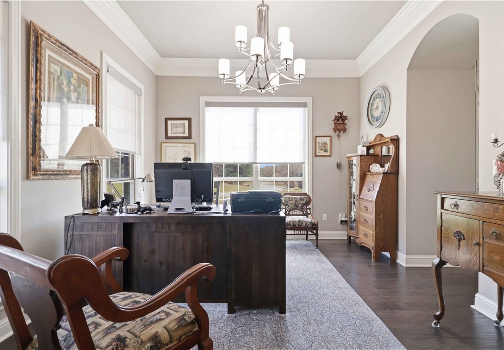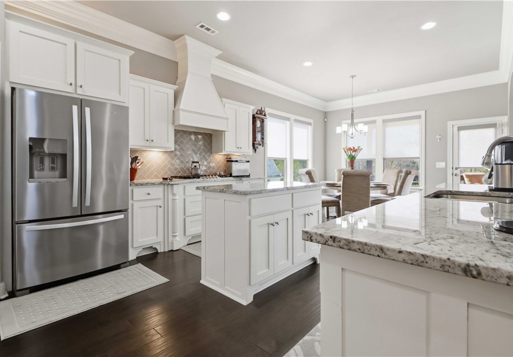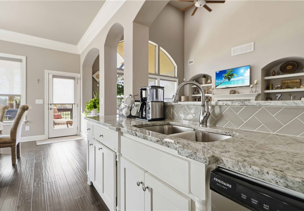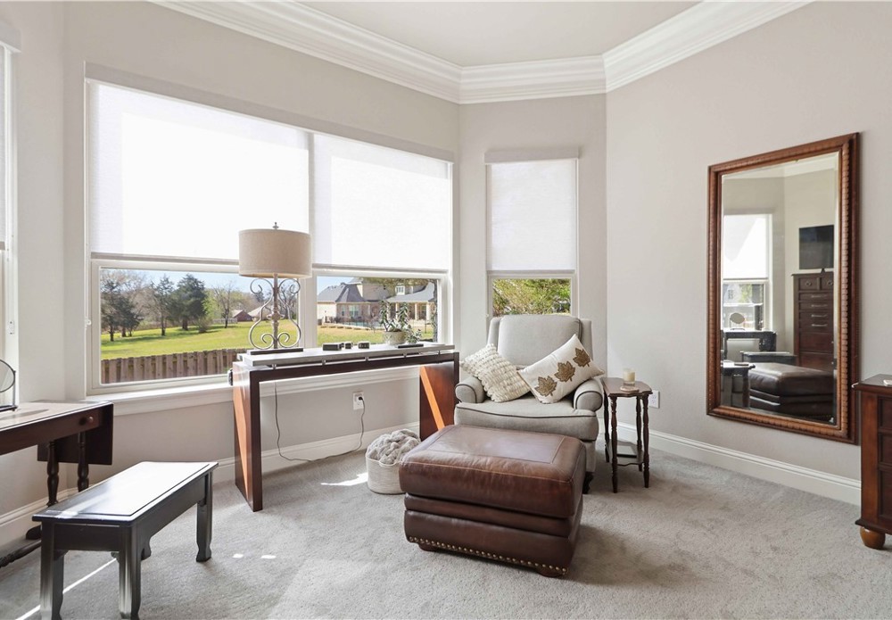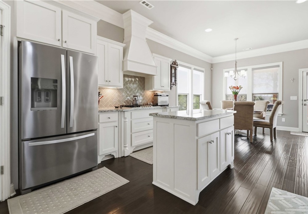 Nestled in one of East Fayetteville's most sought-after s/d's, this stunning estate-style home offers 3,100 SF of thoughtfully designed living space featuring 4 bedrooms, 3.5 bathrooms, & a 3-car garage.The two-story living room commands attention with floor-to-ceiling windows, rich hardwood floors, elegant crown molding, built-in cabinetry, & a gas log fireplace.The open-concept gourmet kitchen is a chef's dream, appointed with white cabinetry, stainless steel appliances, a center island, breakfast nook, & a raised granite bar- all flowing seamlessly into the main living areas and formal dining room.The main-level primary suite includes beautiful bay windows, a spacious walk-in closet,& a spa-inspired en suite with a walk-in shower, whirlpool tub, & double vanity. Upstairs features 3 br, a jack-and-jill bath,& a bonus living area.Step outside to an oversized covered patio & fenced backyard — a private setting perfect for relaxing. Other amenities include plumbing roughed in for central vac & wired security system