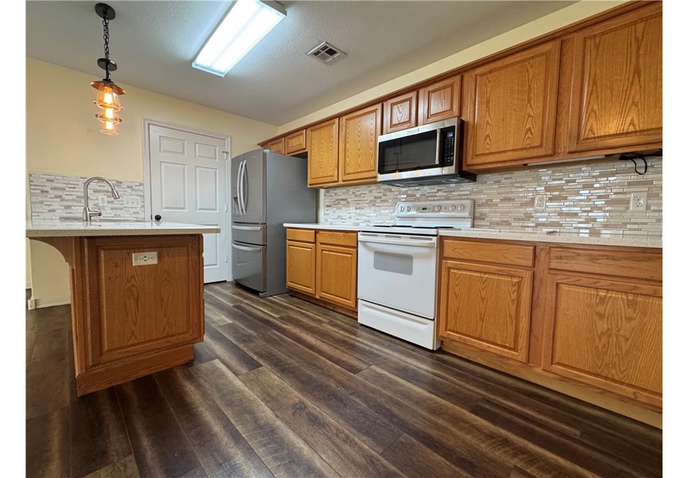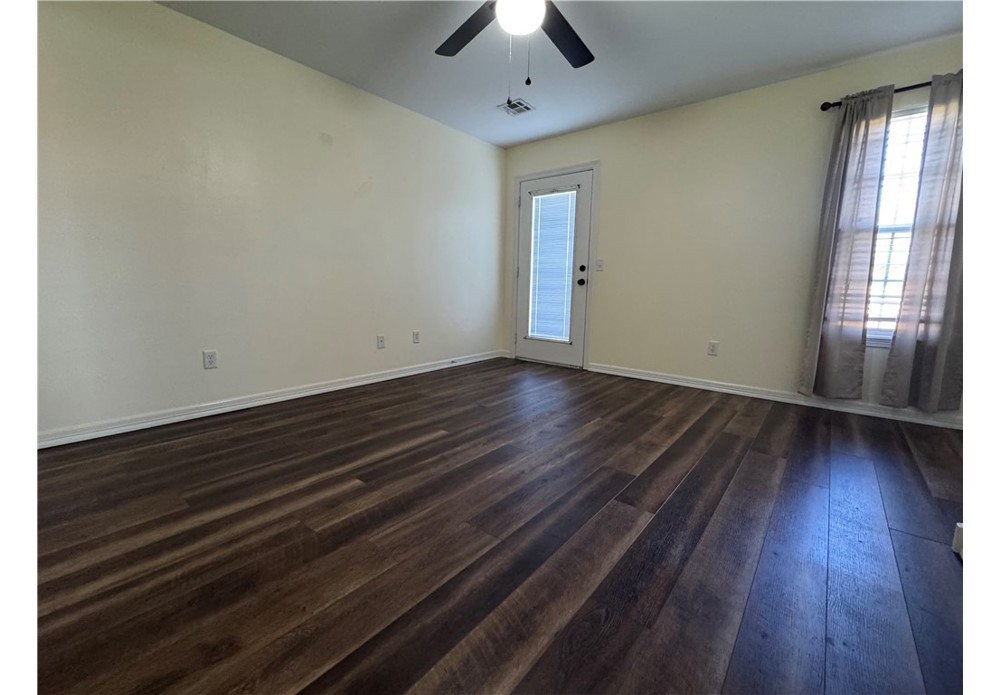 Just minutes from Downtown Bentonville, schools and biking. Great 3 bedroom 2 bath duplex. Open floor plan and wood style flooring throughout. Kitchen includes refrigerator, dishwasher, over the range microwave and a pantry. Primary bedroom has double sinks and large closet. Fenced back yard. Washer and dryer included. No CATS!