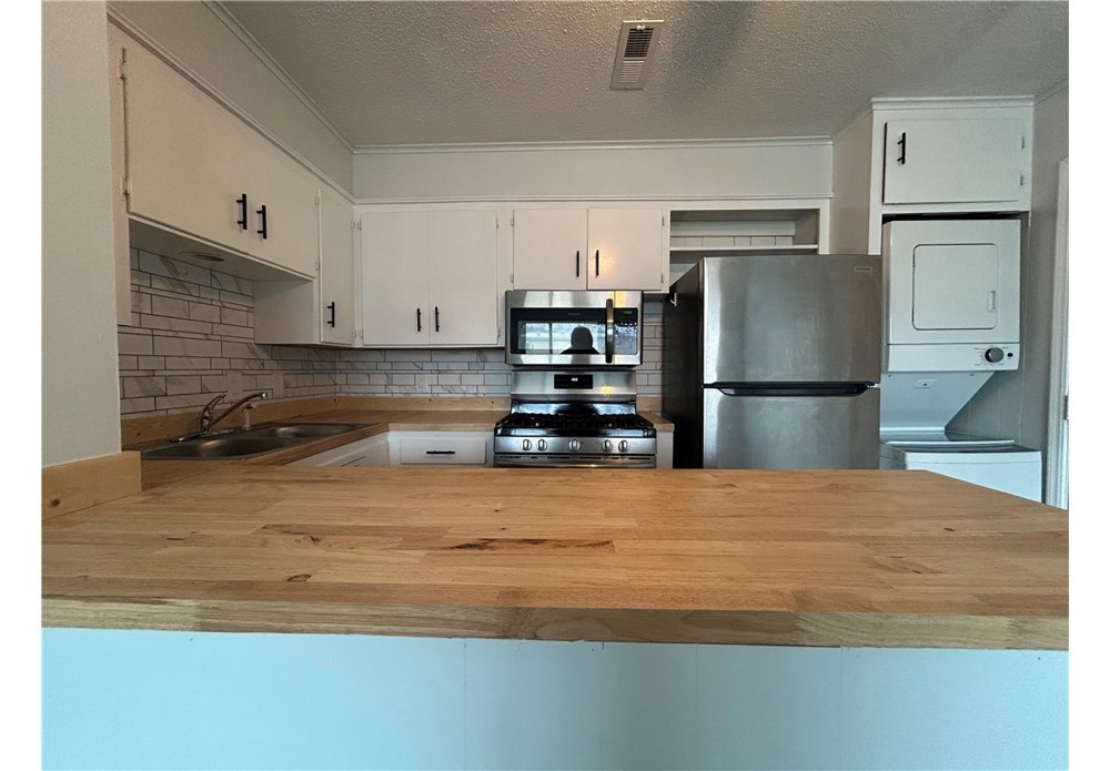 Welcome to this gorgeous 1 bedroom / 1 bath upstairs apartment. There is a stackable washer and dryer in the unit. Other appliances include a refrigerator and gas stove. Off street parking. Small pets are welcome!