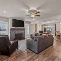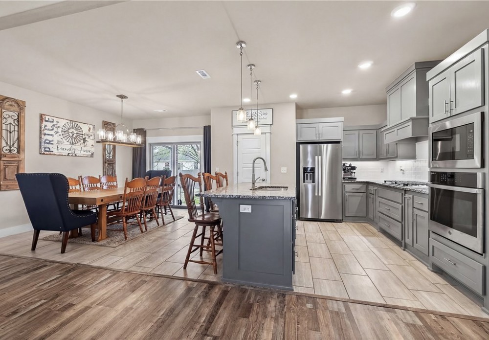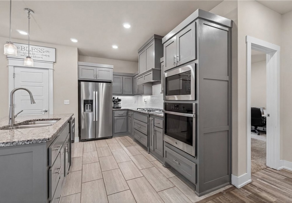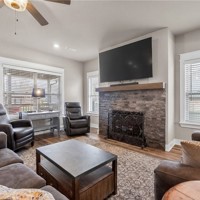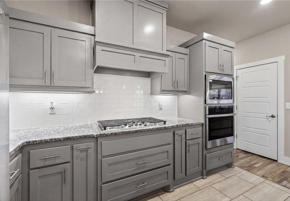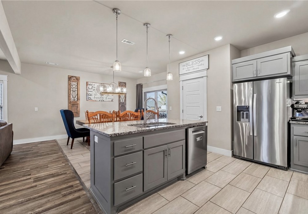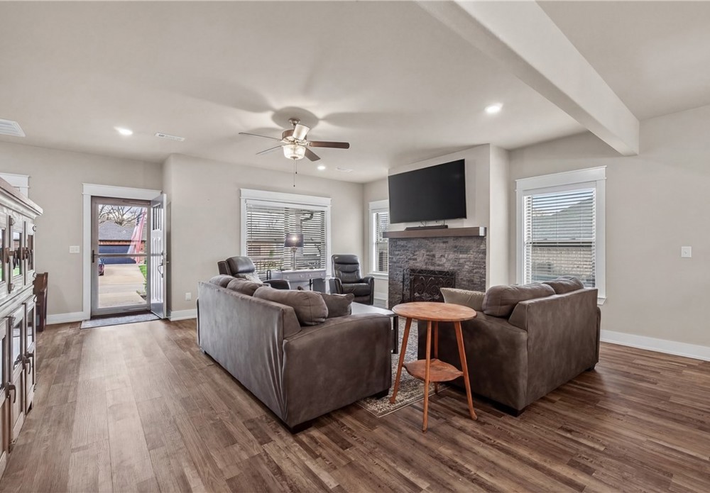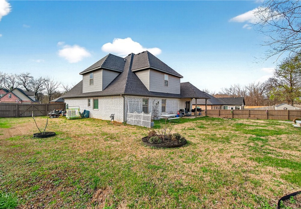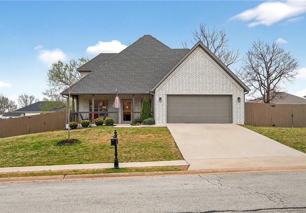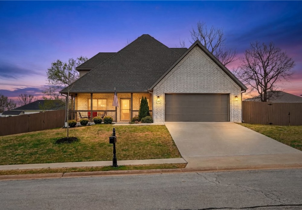 Built in 2020 and beautifully maintained, this stunning 4-bedroom, 2.5-bath home in Pea Ridge offers modern comfort. Designed with both everyday living and entertaining in mind, the open-concept floor plan welcomes you with wood flooring and a gorgeous stone gas-log fireplace. The kitchen is both functional and stylish, featuring granite countertops, shaker cabinetry, stainless steel appliances, separate gas cooktop, built-in oven and microwave, and a large center island with seating. The dining area opens seamlessly to the covered back patio, fenced backyard, and a beautiful stone fire pit perfect for relaxing or entertaining. The primary suite features a walk-in closet, jetted tub, and tiled walk-in shower. The additional bedrooms provide room to grow, host guests, or create the perfect office setup. Located close to schools, parks, trails, and dining, this home combines quality, convenience, and charm in one exceptional property. Schedule your private tour and see all this home has to offer.