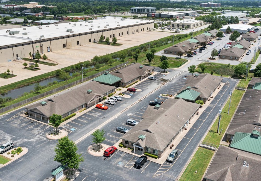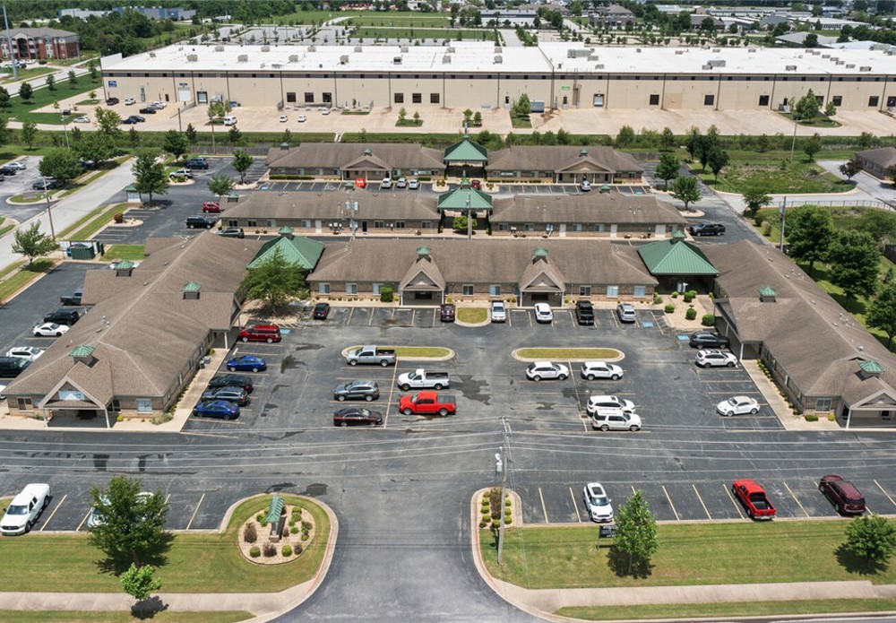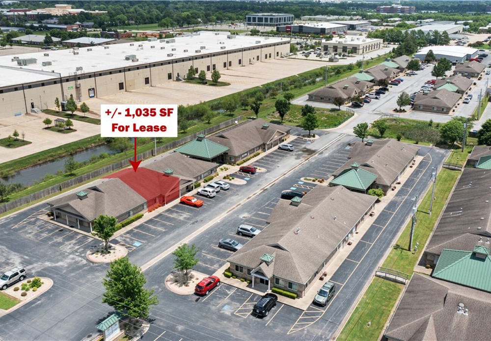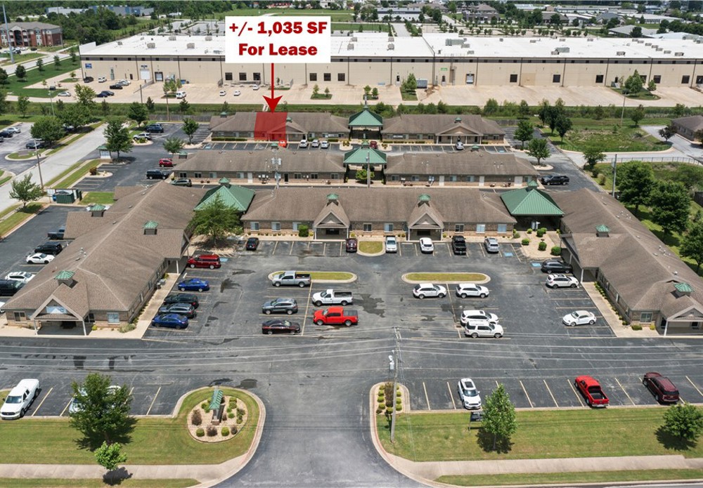 +/- 1,035 SF office space available for lease in Oak Trace Office Park in Bentonville. The suite offers 2 offices in the front and a hallway that leads to an open workspace in the back with 2 open office areas. This would be a great spot for staging products or providing services such as photography. There is a restroom in the back with a storage room as well. One of the offices in the front is quite large at 10'x14', making it a great conference room if needed. It is a turnkey option that works well for growing businesses, or companies seeking a satellite location near key Bentonville amenities. Electric, gas, water, landscaping, trash service, and parking lot maintenance are provided and cared for by the landlord and property management. Tenants have access to ample on site parking and may place signage on the building and the street side marquee. Oak Trace is only five minutes from downtown Bentonville and the new Walmart Home Office, and only 15 minutes from the XNA airport. $80 per 1000SF monthly utility fee.