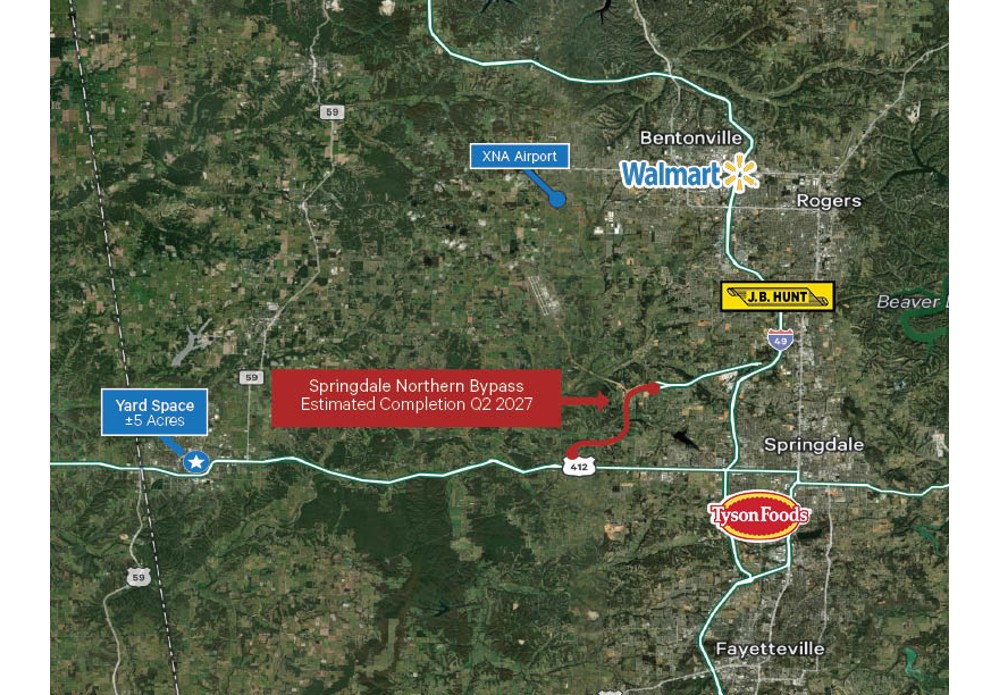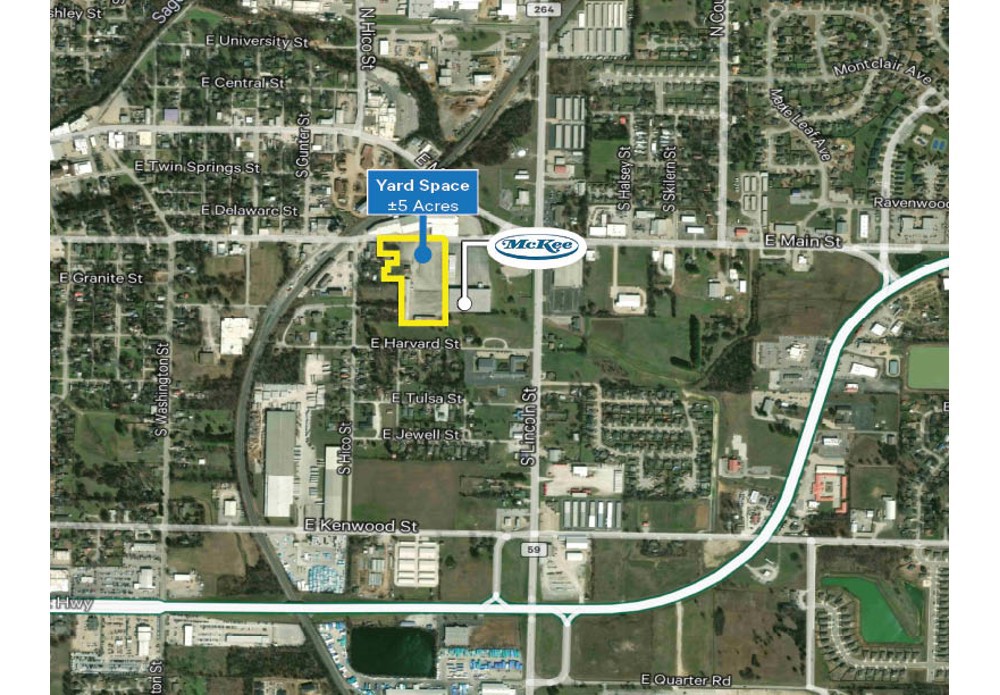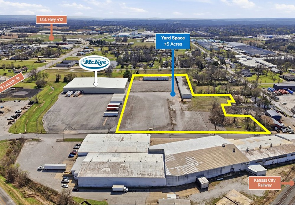 Prime industrial yard space available for lease in Siloam Springs. This ±5-acre lot offers an exceptional opportunity for businesses requiring significant laydown or storage areas. The property is partially paved, lit, and fenced along Jefferson St, providing security and convenience. Additionally, there is potential for ±10,350 SF of building space on-site, available as needed.
