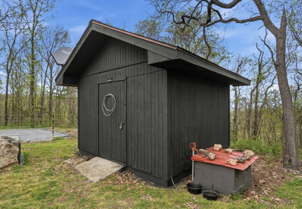 Whether you have homesteading on your heart or are searching for a prepper’s paradise, this modern Ozark home on 22 acres has it all! The gated property features a custom fire pit and entertainment area, mature fruit trees, blueberry bushes, and complete privacy with no bordering properties (a fire road borders the land). It includes a private well with filtration system, septic system, and a garden with electric fence and enriched soil. You’ll also find a custom chicken coop and run, heated and insulated dog/cat house, and a backyard dog run. Additional highlights include an alarm system, doorbell camera, wood-burning stove insert with blower, abundant wildlife, and an A/C unit under five years old. Inside, enjoy modern finishes like subway tile, wood plank flooring, clawfoot tub, and shiplap walls. With timber, natural rock formations, seasonal 360° views, and room to expand, this serene property is a rare find.
