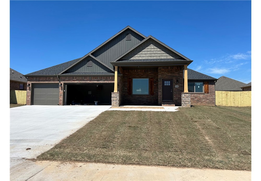 Stunning new construction—this single-story home features 3 bedrooms, 2 bathrooms, and a spacious 3 car garage. The kitchen is equipped with stainless steel appliances, a gas cooktop, microwave, vent hood, pantry, and granite countertops. A large fireplace flanked with built-in bookshelves serves as a striking centerpiece in the living room. Elegant details include wood-cased windows with 2-inch blinds throughout. Enjoy great curb appeal with a large front porch, fully sodded oversized yard, and privacy fence. The covered back porch and fully installed gutters add both comfort and functionality. The primary suite boasts an oversized tiled shower and a walk-in closet that connects directly to the laundry room, located near the garage for added convenience. Durable brick exterior construction ensures longevity and low maintenance. Seller will pay $2,500 in buyer concessions. $5,000 lender credit available with preferred lender. Interior photos are of similar plan, interior finishes may vary.