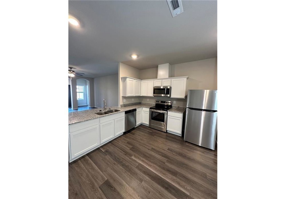 This home offers a beautiful curb appeal that will capture your attention with its charming covered front porch, elegant brick columns, and stylish arch-top windows. As you step inside, you are greeted by an inviting entryway that sets the tone for the rest of the house. The split floor plan of this home provides a functional layout, offering privacy and convenience. With four bedrooms and two bathrooms, there is ample space for a growing family or accommodating guests. The master suite is particularly impressive, providing a spacious retreat for relaxation and comfort. The kitchen and dining area of this home is truly stunning. It has been thoughtfully designed and equipped with modern, energy-efficient appliances that not only enhance the aesthetics but also contribute to a sustainable lifestyle. The ample counter space provides room for meal preparation, while the convenient pantry ensures that you have plenty of storage for all your kitchen essentials.