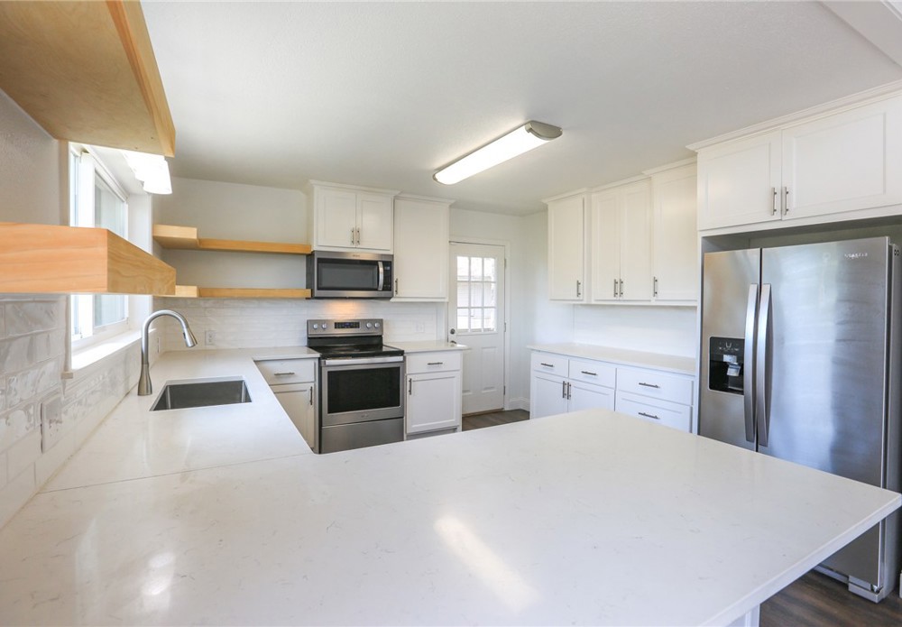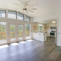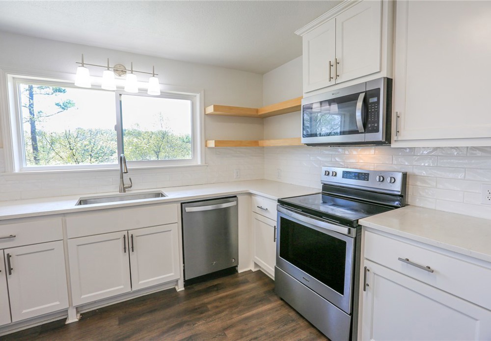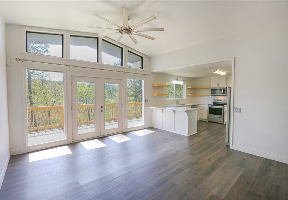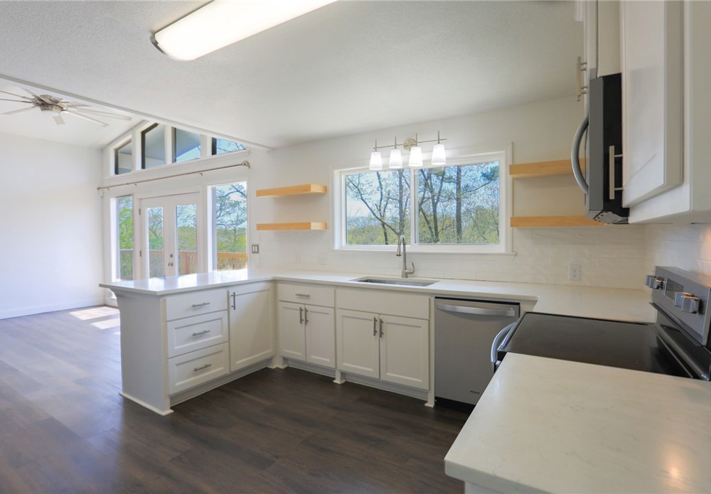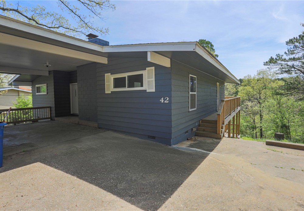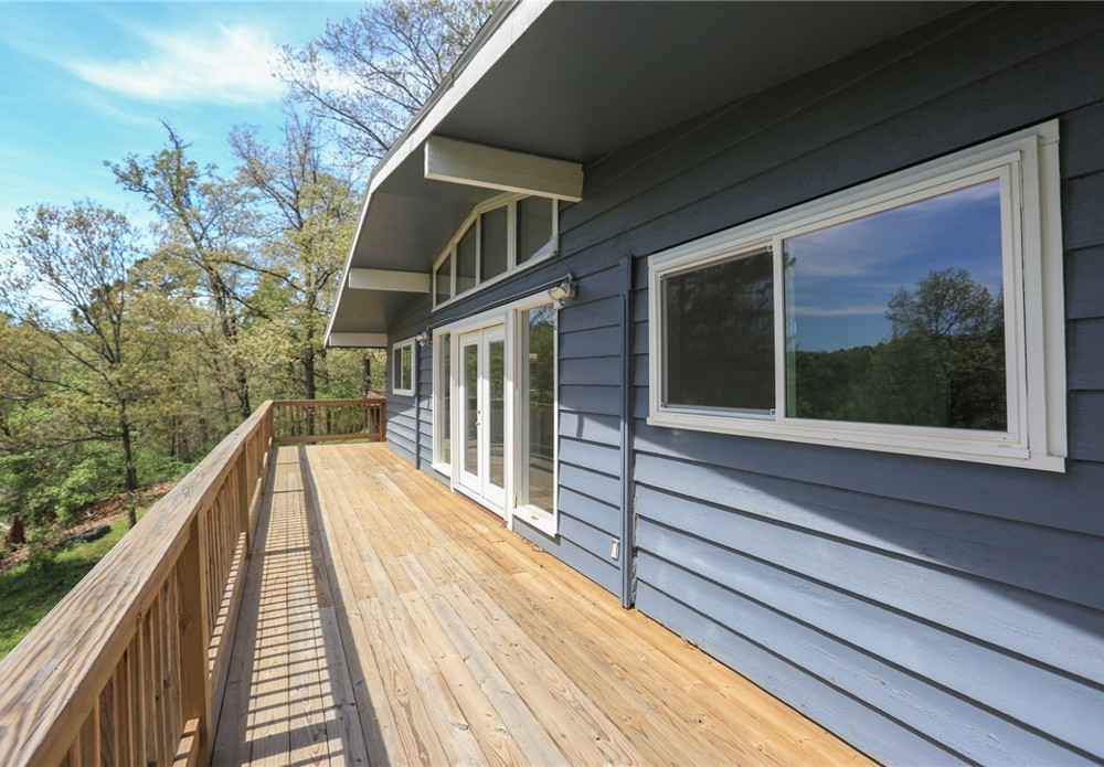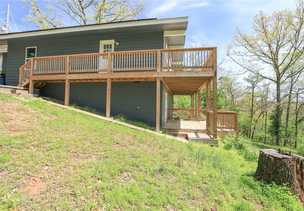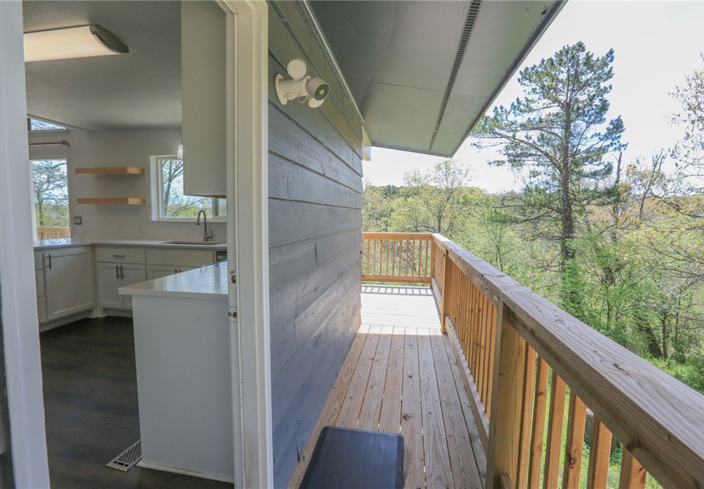 Calling all Mt Bikers. Completely remodeled home with a magnificent view of the Ozarks, The Tunnel Vision Bike Trail is just below the house and only a few feet away from your back door! Home has solar panels which will be a huge bonus for lower utility bills. Newer wrap around deck, and a second lower deck to enjoy the outdoor views. Completely renovated interior with upgraded bathrooms, kitchen with quartz counters and stainless appliances. Modern Electric Fireplace flanks the vaulted living room with lots of natural light. Hard surface flooring throughout . Refrigerator, and washer/dryer included for tenant use.