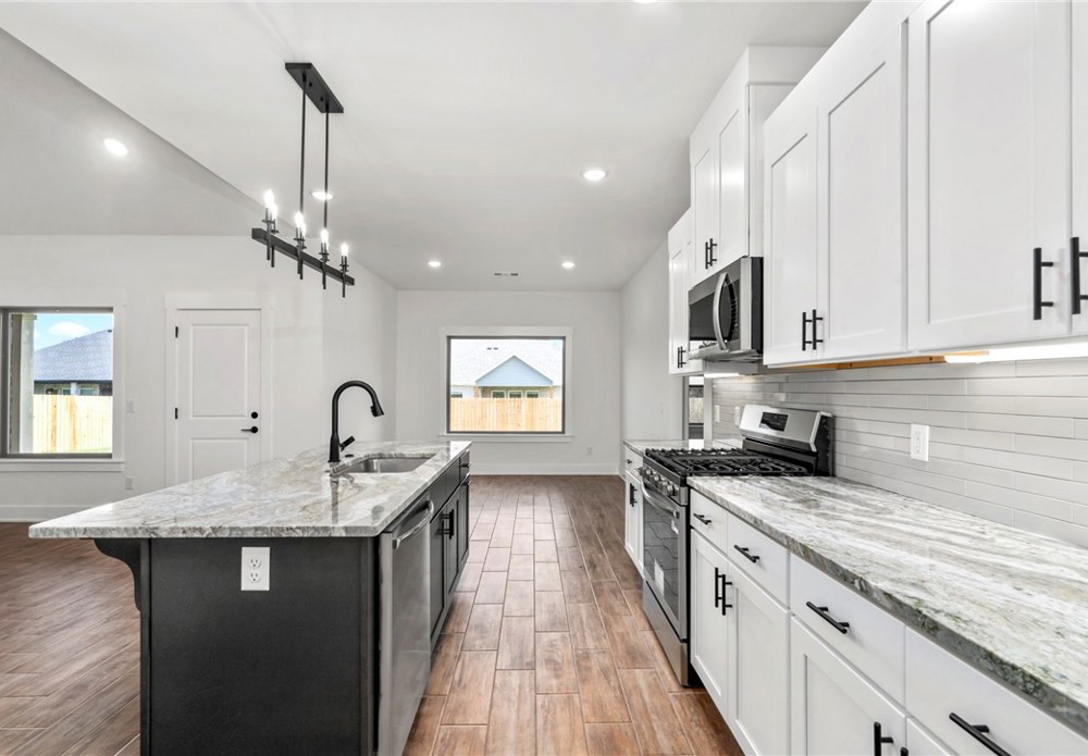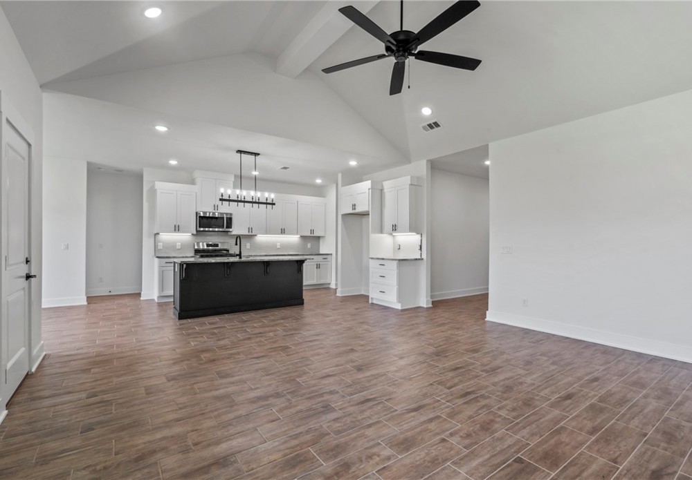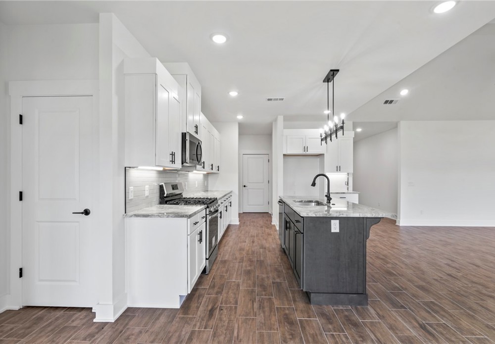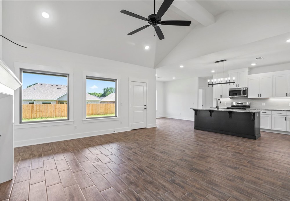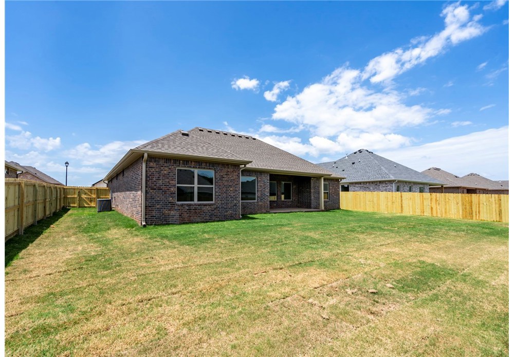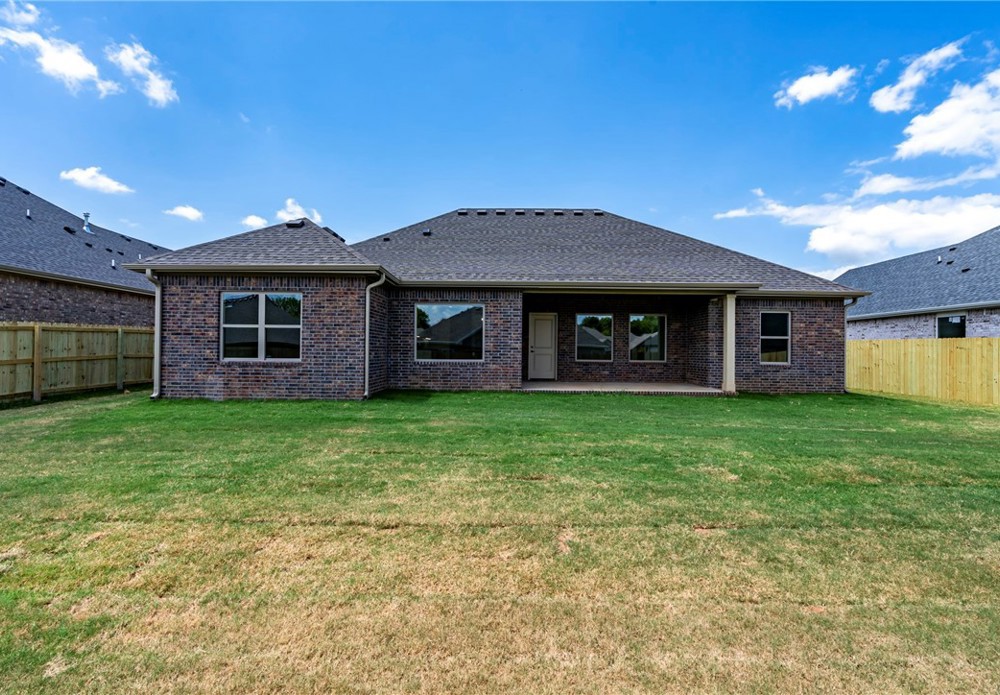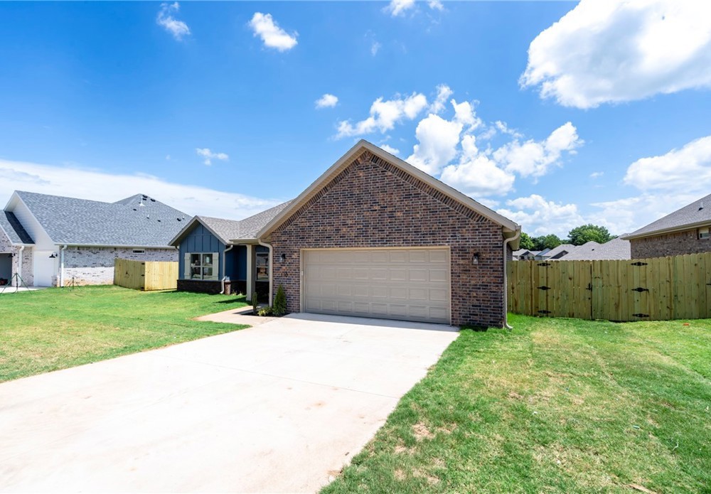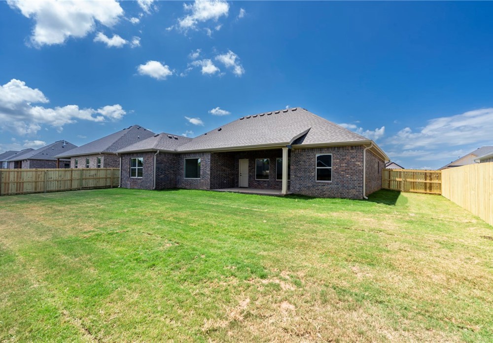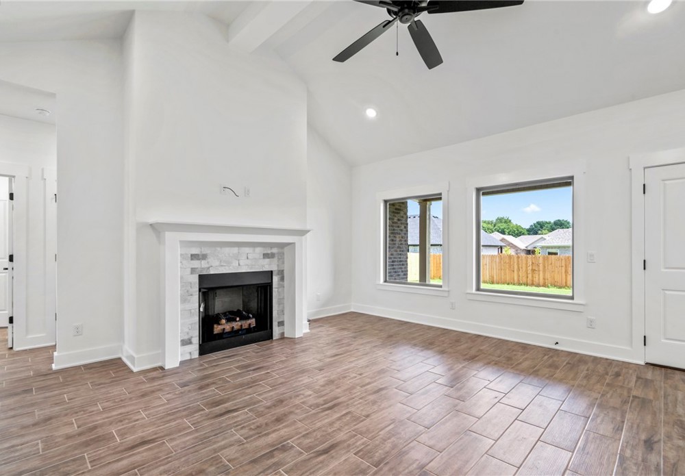 Stunning 4bed, 2 bath brand new home available now in the Summerfield subdivision. Step inside to an open-concept living area featuring vaulted ceilings, wood-look tile flooring, and a beautiful fireplace. The kitchen is a standout with granite countertops, SS appliances including a gas range, a large island, tile backsplash, and ample cabinet space. The primary suite features a spa-like bath with dual vanities, a fully tiled walk-in shower, soaking tub, and a spacious walk-in closet. Enjoy outdoor living in the fully fenced backyard with a covered patio—perfect for relaxing or entertaining. 2 car attached garage. Conveniently located just minutes from Creekside Park, Kessler Mountain Regional Park, the Razorback Greenway, and a short drive to the University of Arkansas, I-49, shopping, and dining.