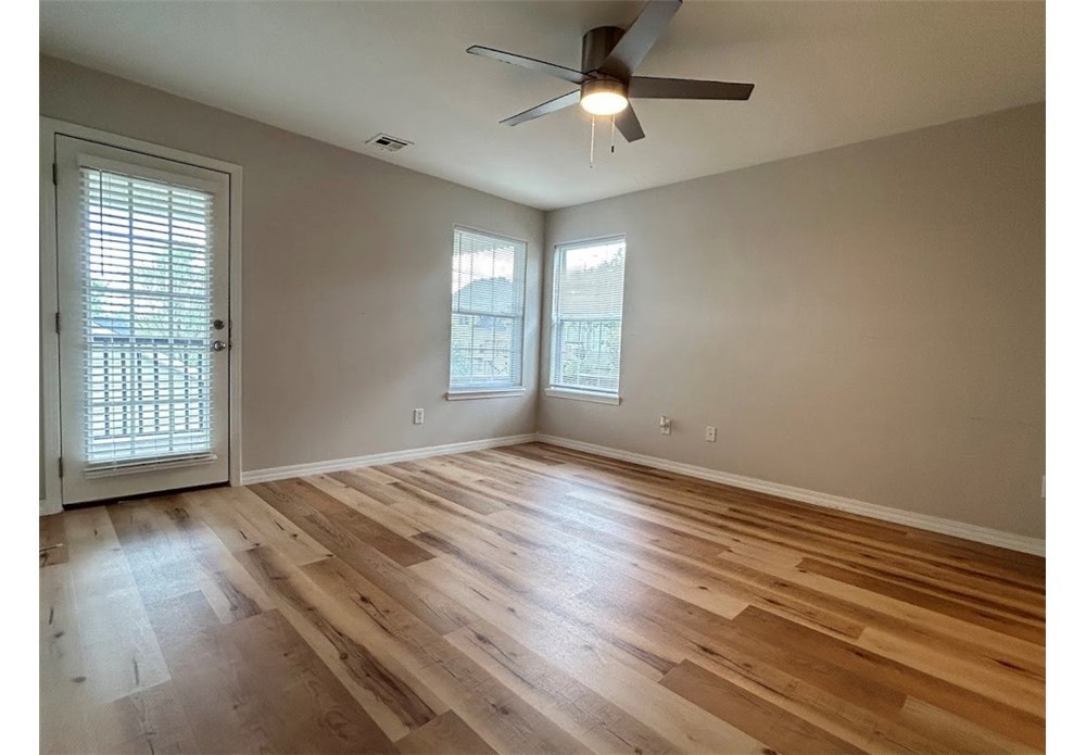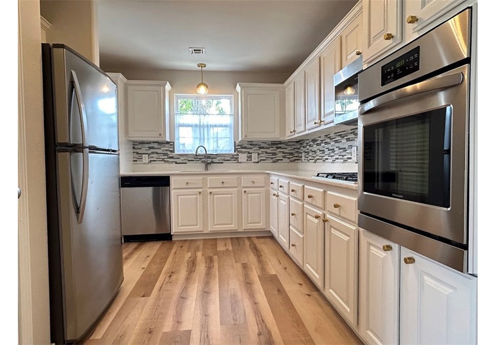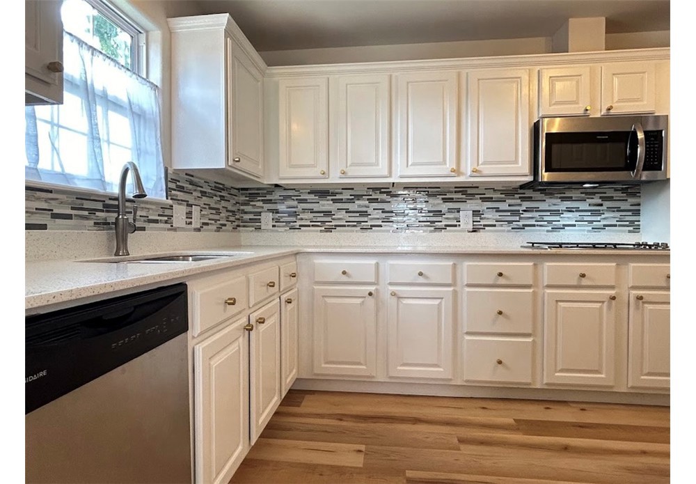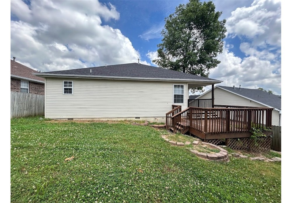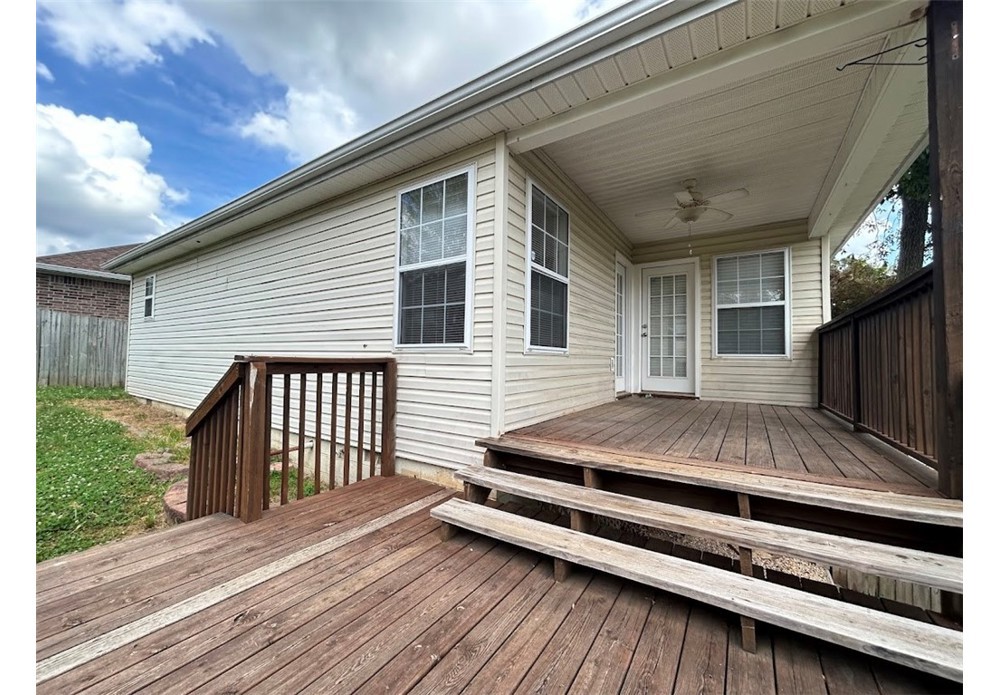 Lovely 3 bedroom, 2 bath single family home available for rent in Bentonville. This home has a lot to offer! Kitchen has lots of white cabinetry, quartz countertops and stainless steel appliances including full-size refrigerator, gas cooktop, oven, microwave and dishwasher. The living room is large with a distinguished vaulted ceiling. All bedrooms are good-sized and each have their own ceiling fan. Primary bathroom features a walk-in shower and double vanity sinks. Guest bathroom has tub/shower combo. Washer & dryer hook ups only in laundry room. Awesome wooden back deck, several garden beds to plant vegetables or flowers and a privacy fence. 2-car garage. No pets please. Tenant occupied until 6/30/26.