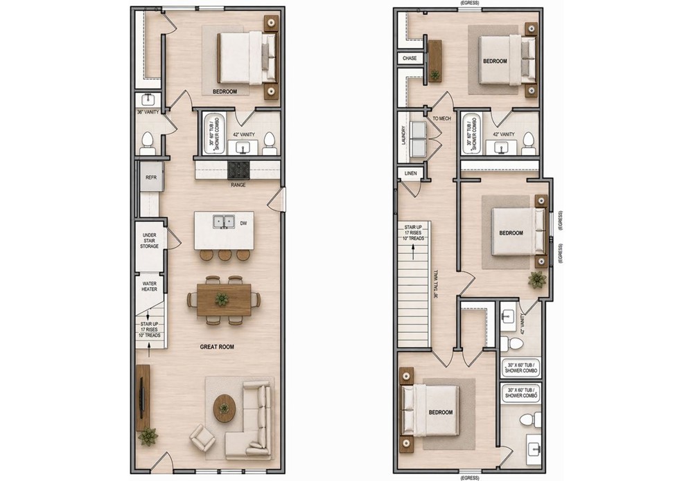 AVAILABLE AUGUST 1, 2026! Brand new luxury 4-bedroom home featuring private en suite bathrooms in every bedroom, plus an additional half bath on the main level for guests. Designed for modern living, this home offers a spacious open-concept layout, luxury vinyl plank flooring throughout (including bedrooms), quartz countertops, stainless steel appliances, and custom shaker-style cabinetry extended to the ceiling. Refrigerator, washer, and dryer are all included for added convenience. Ample off-street parking available. Ideally located just minutes from campus and directly across from the newly renovated Walker Park, with Phase 1 improvements currently underway and scheduled for completion this summer! Photos are of a similar floor plan. Actual layout and finishes may vary slightly but will be very comparable.