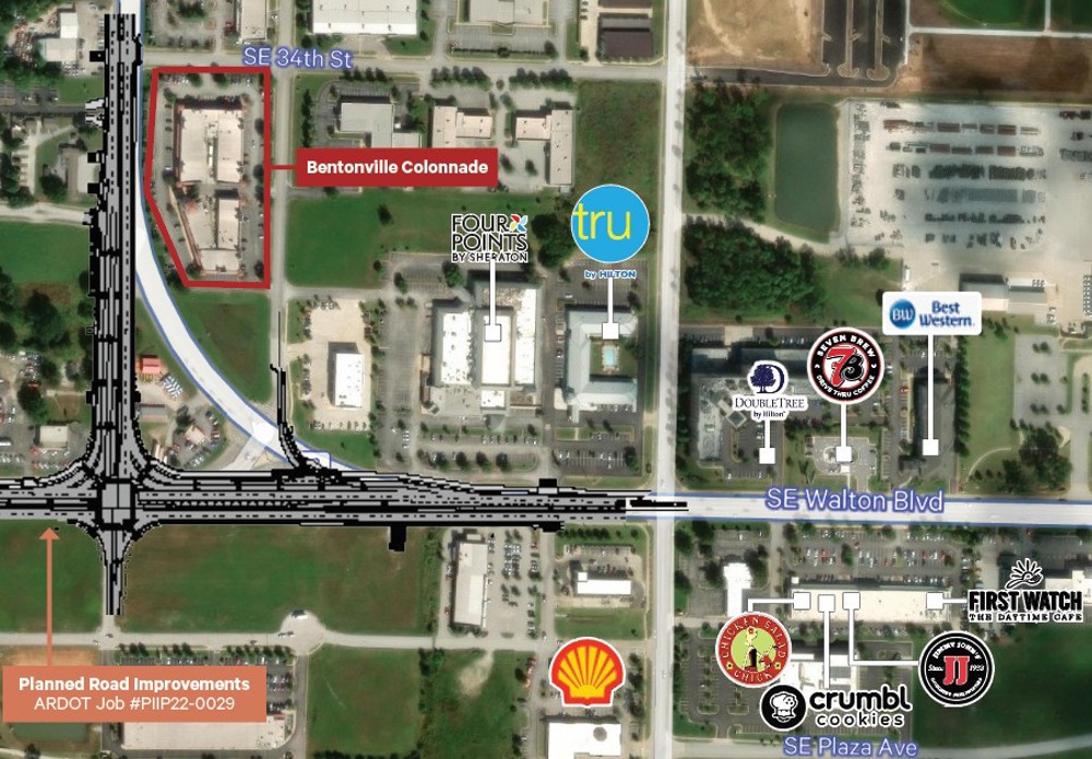 Discover a highly visible retail opportunity at Bentonville Colonnade, offering prime space in a bustling area. With available suites of ±2,684 SF (Suite 20, an end-cap restaurant opportunity) and ±1,117 SF (Suite 30), this location boasts excellent visibility with over 21,000 VPD on S Walton Blvd. Benefit from proximity to major corporate headquarters, shopping, dining, and the Bentonville Municipal Airport. Lease rate is $24/SF (NNN).