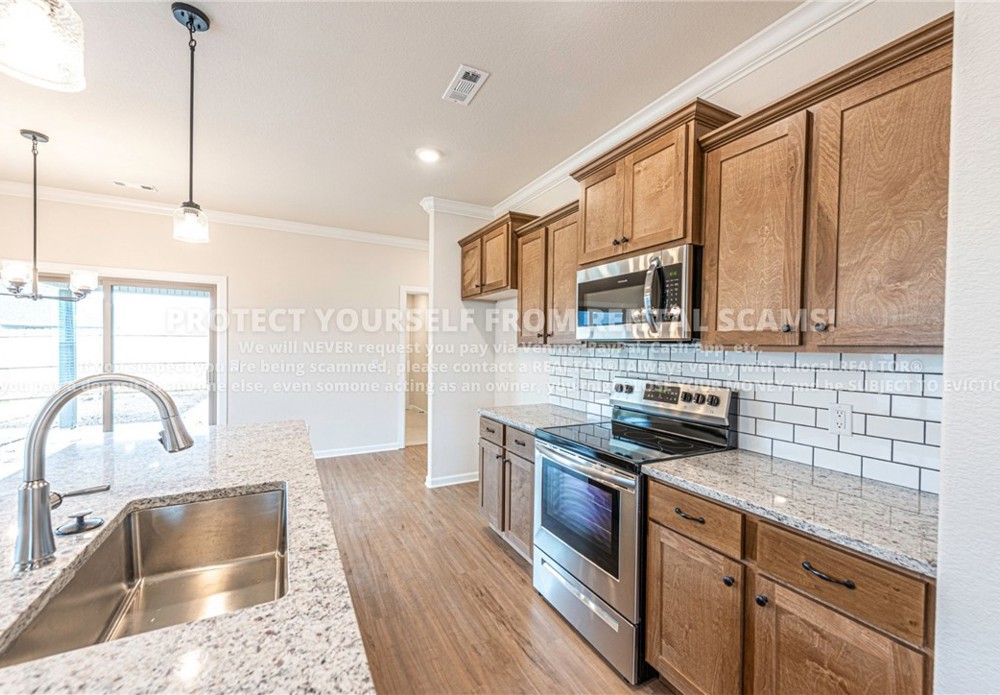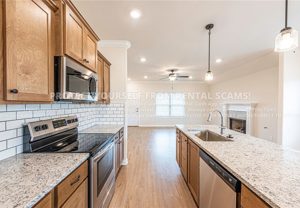COMING SOON! Available approx. 7/10/26! Washer & Dryer included! Check out this beautiful 3 bedroom 2 bathroom home located near parks, schools, shopping, eateries, and a short drive to University of Arkansas! Head inside to the open concept living room and kitchen with a gas log fireplace, granite countertops, island with breakfast bar, and stainless steel appliances! Check out the spacious primary bedroom with private ensuite feat: double sink vanity & Walk-in closet! Relax and relish under the covered patio out back and enjoy the fenced in-backyard! *Available date may change. Property is tenant occupied - do not disturb the tenant. **Tenant is responsible for all utilities and lawn care/maintenance. *Pets Negotiable