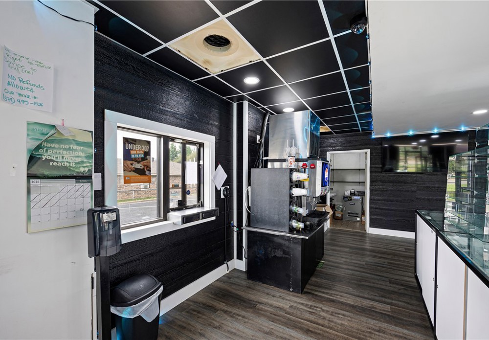 Prime commercial opportunity in a high-traffic, central location. This recently renovated 1,604 sq ft building offers excellent visibility and versatility, formerly operating as a smoke shop and previously a restaurant—making it well-suited for a variety of business uses. Positioned in the heart of town, the property is within walking distance to the high school and directly across from the hospital, providing consistent foot and vehicle traffic. Features include existing walk-in refrigerators, a drive-thru window, a bathroom, dedicated office space, and a spacious paved lot with ample parking. Ideal setup for restaurant, retail, or service-based business with strong potential for redevelopment or continued commercial use.
